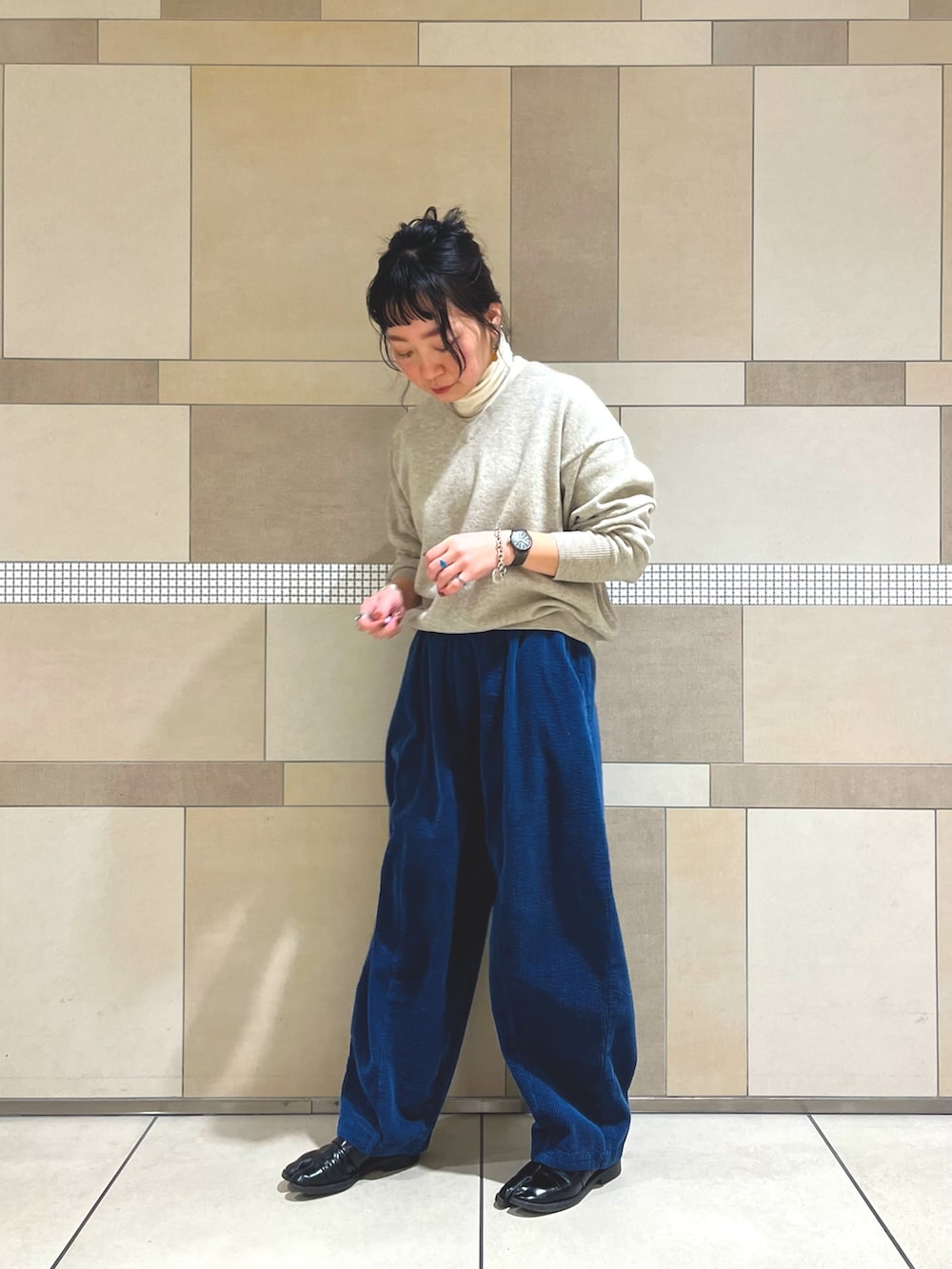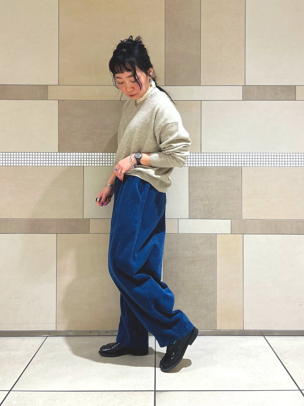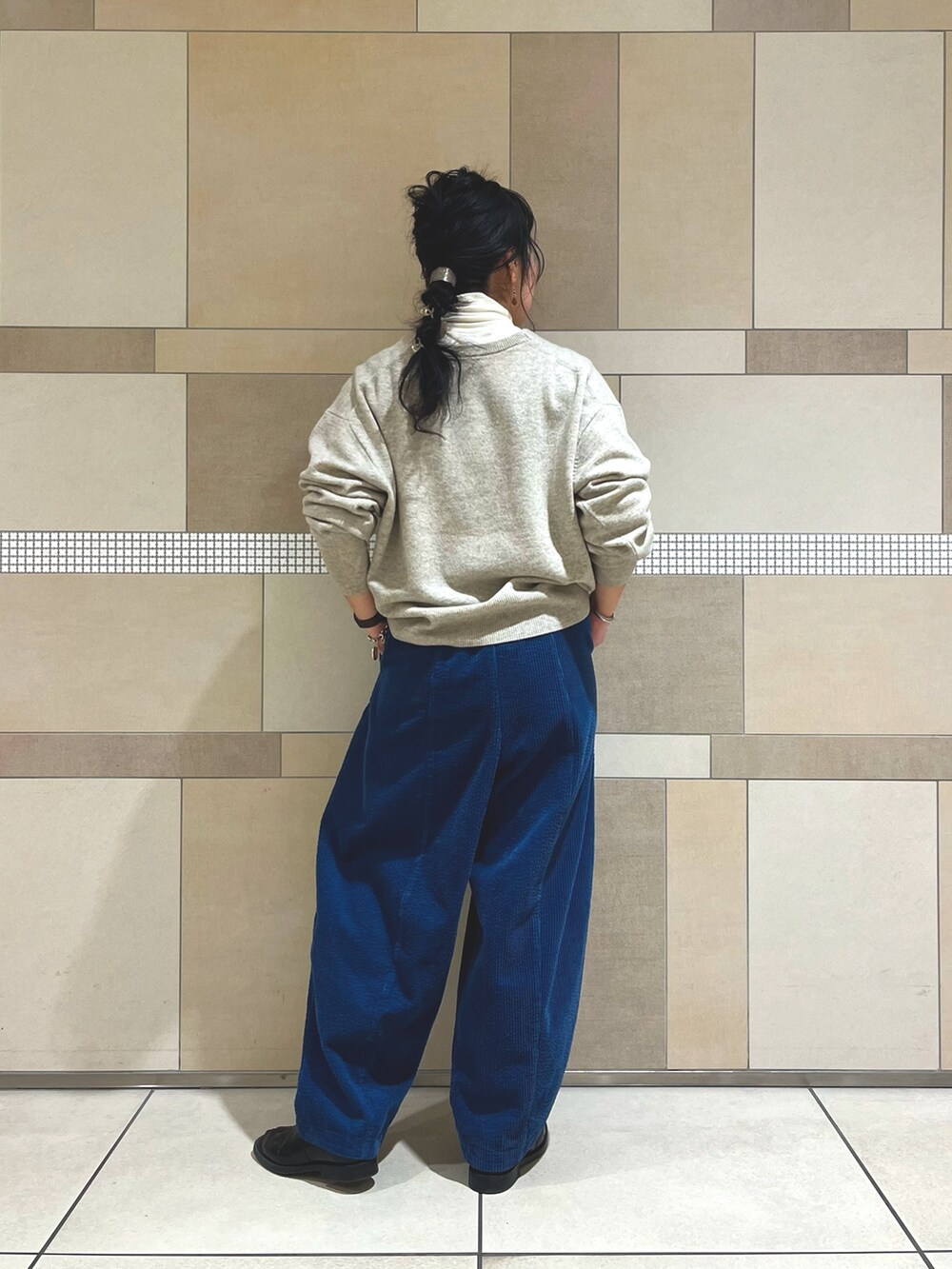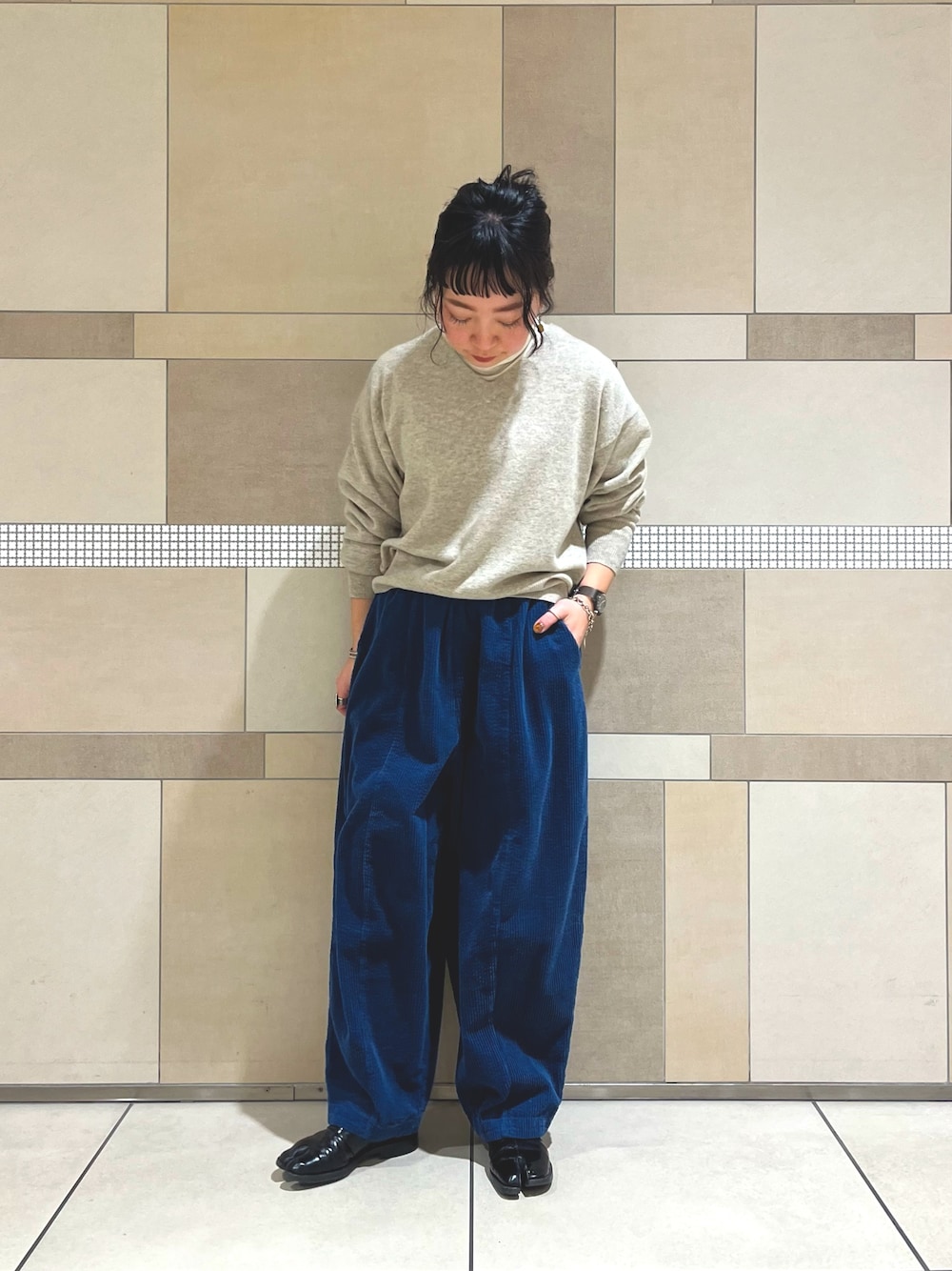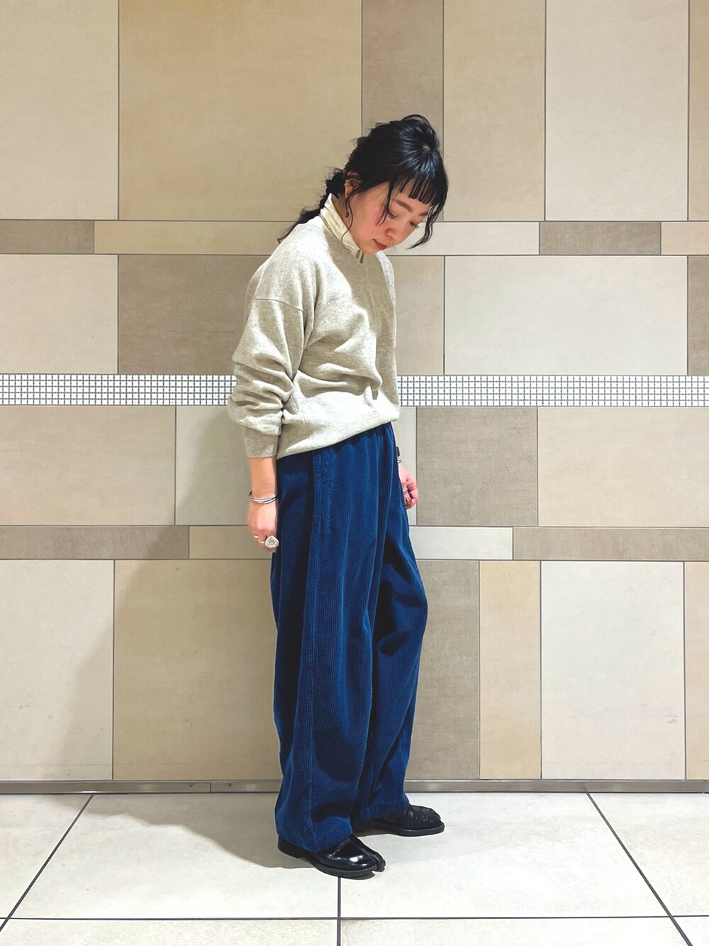 ラムウールのふんわりしなやかな肌触りのニットと、かぐれ定番のシルエットのコーデュロイバージョンのパンツです!