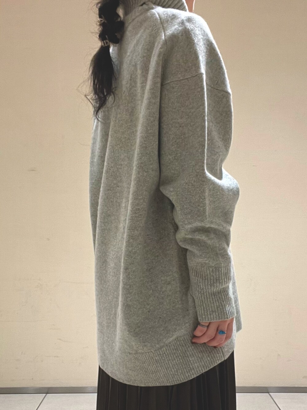ニットはチュニック丈ですが、オーバーサイズではないのでスッキリ着られる1枚。