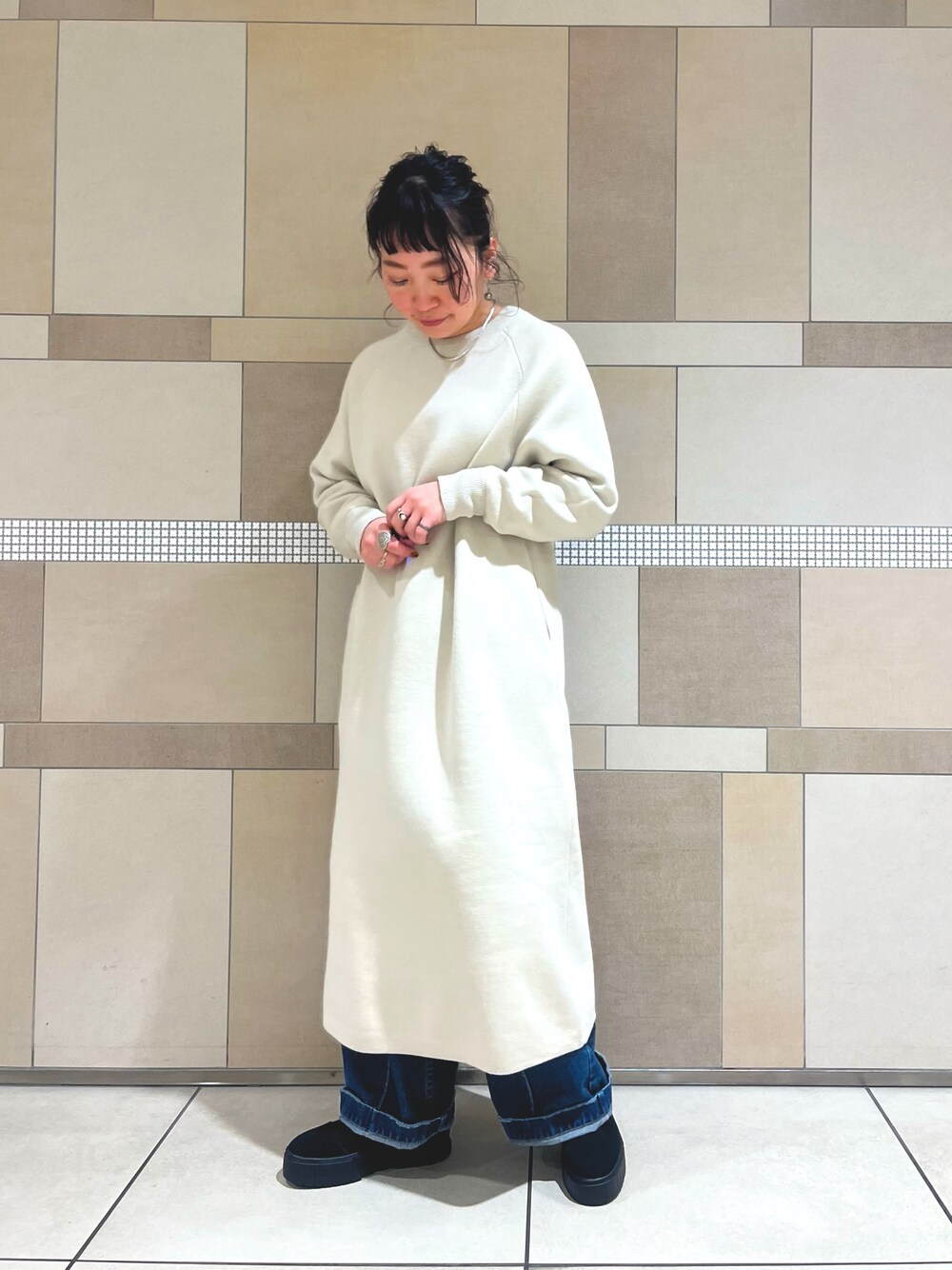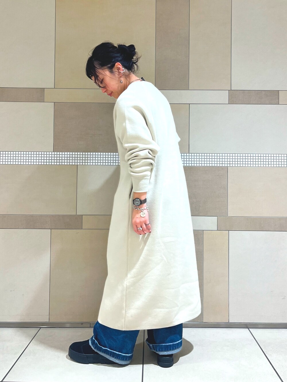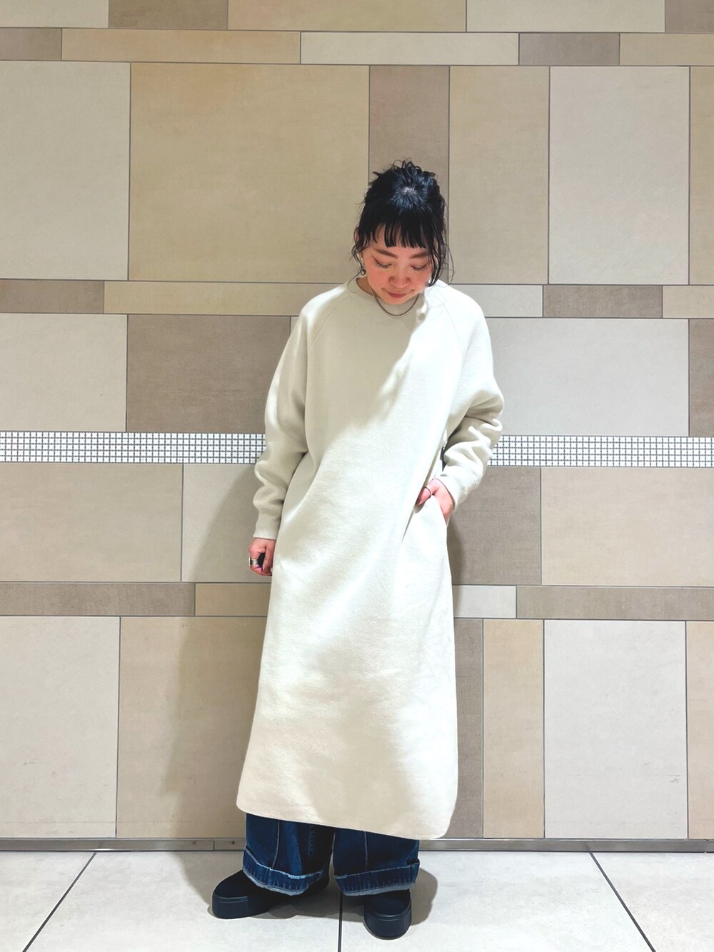 肉厚でしっかりした生地感なので、今は重ね着して着ていただいて春先は1枚で。