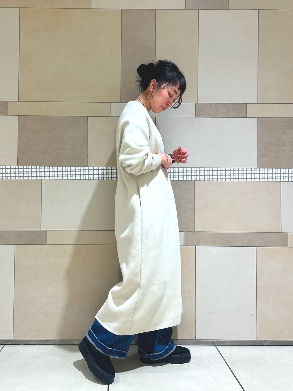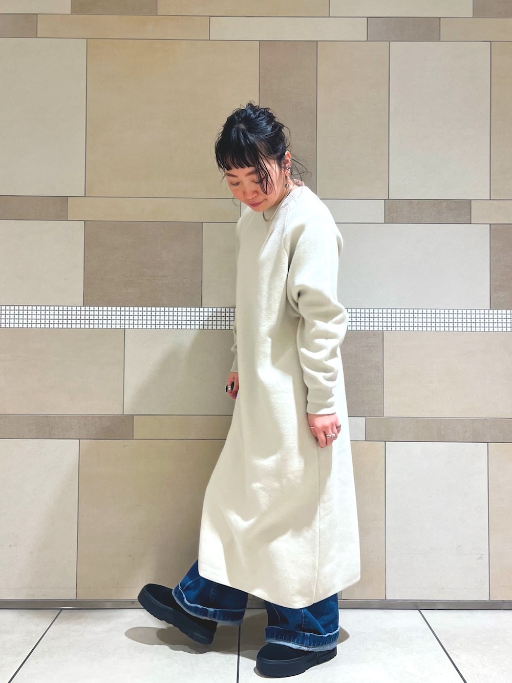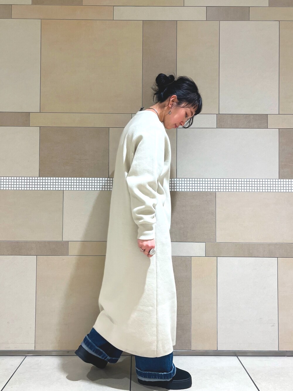 肉厚でしっかりした生地感なので、今は重ね着して着ていただいて春先は1枚で。