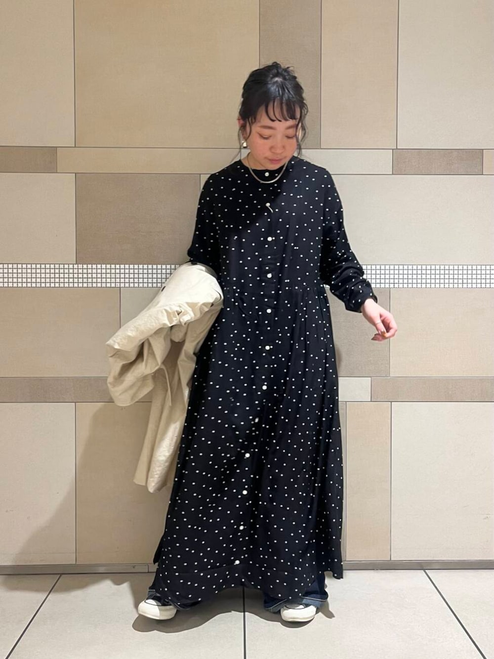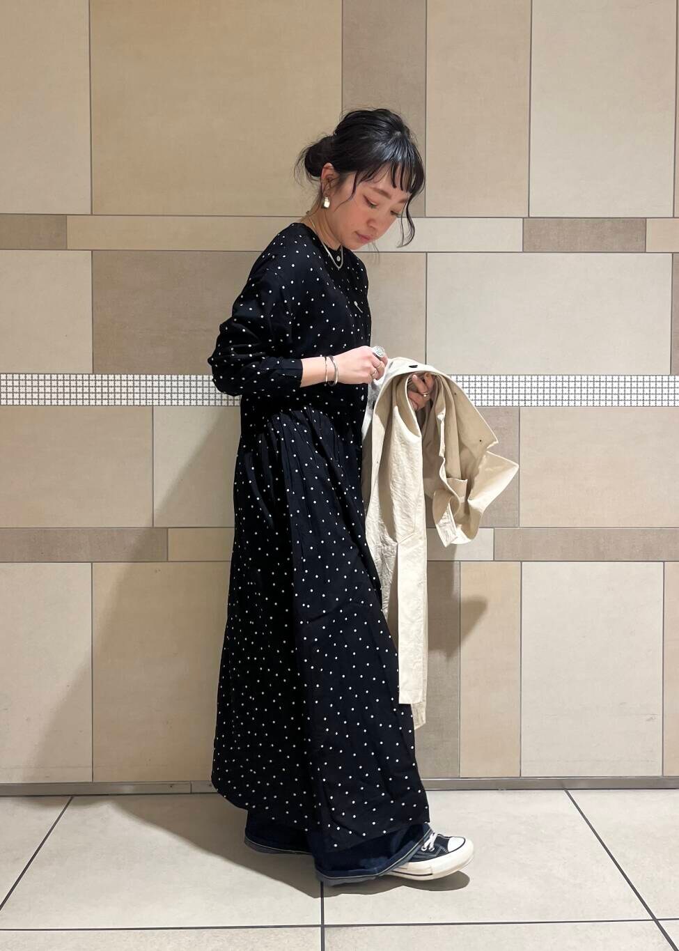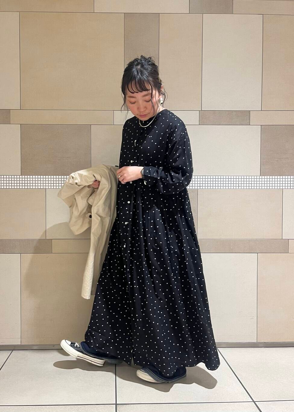 大きすぎず小さすぎずのドット柄は、派手になりすぎないので大人っぽいシックな雰囲気にもマッチ