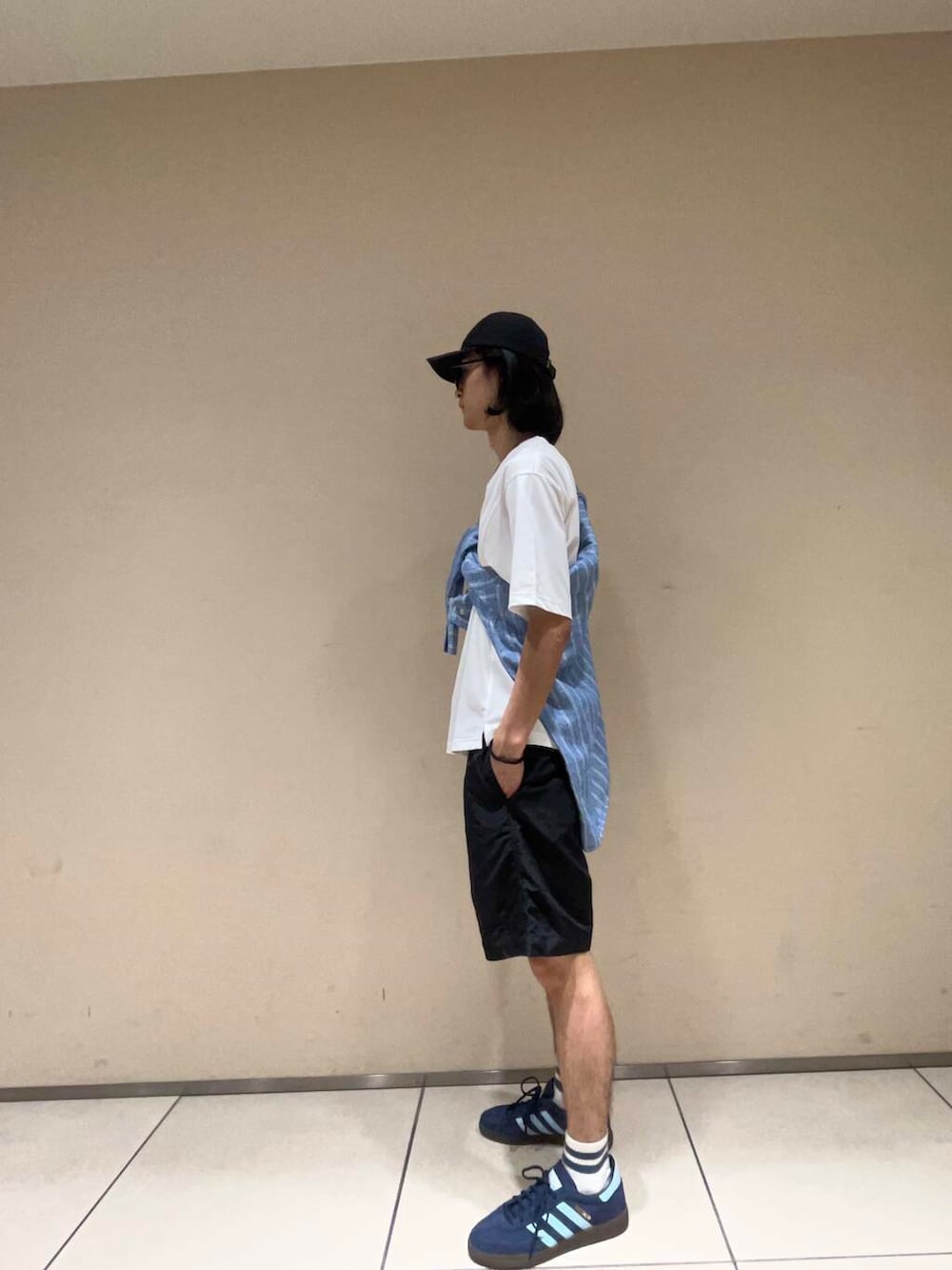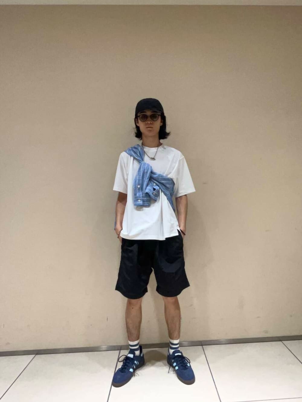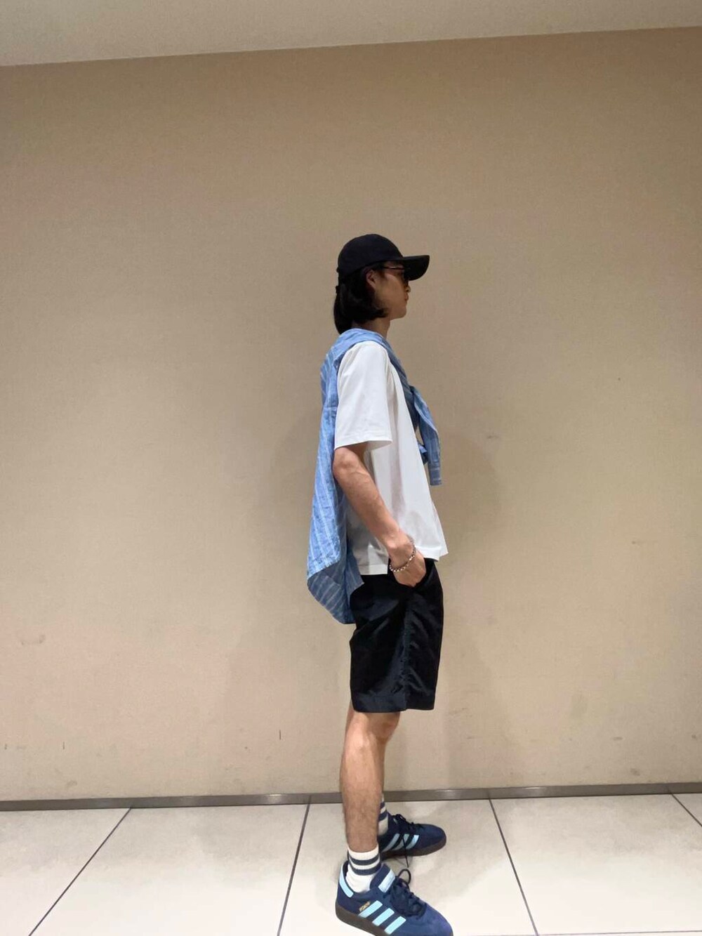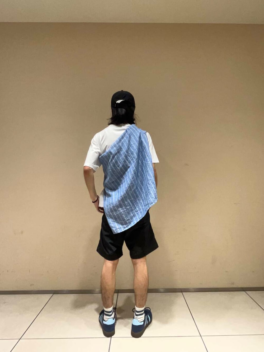 暑い時期ですのでショーツを使ったコーデの紹介です!水色のシャツを取り入れ、たすき掛けをすることにより爽やかで涼しい雰囲気にしてみました!今人気のSPEZIALも取り入れています!