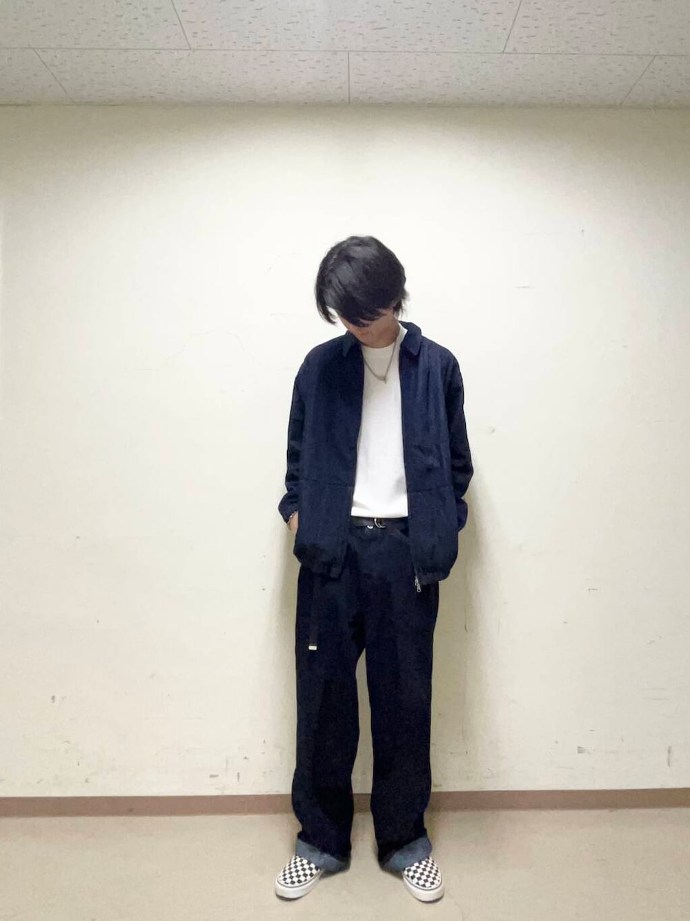 中に白Tシャツを着るだけでオシャレに^^ONEWASHの色味が渋い雰囲気を出すのでとてもおすすめでかっこいいです!