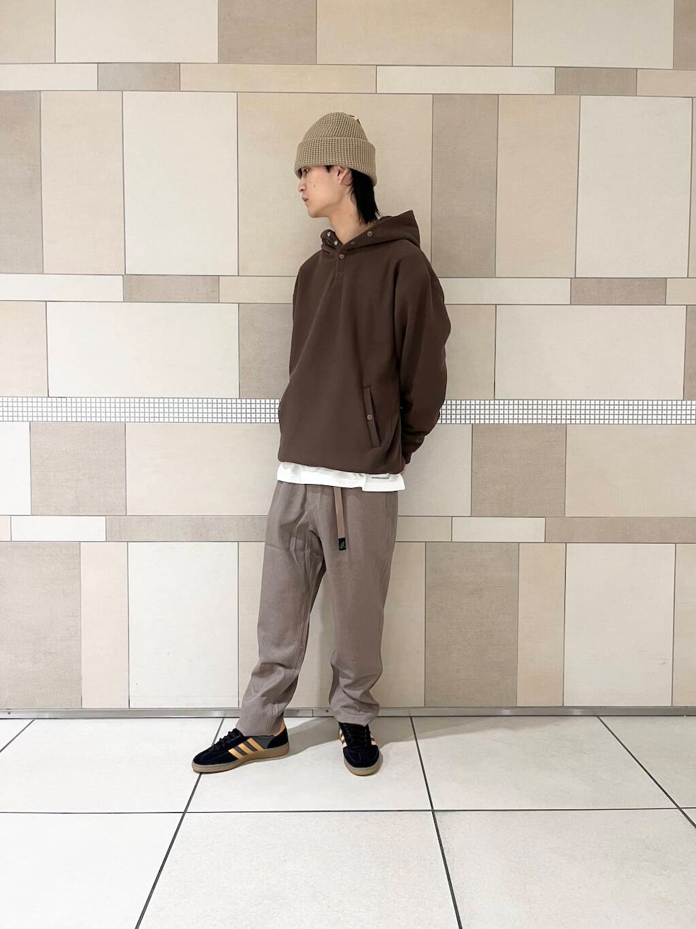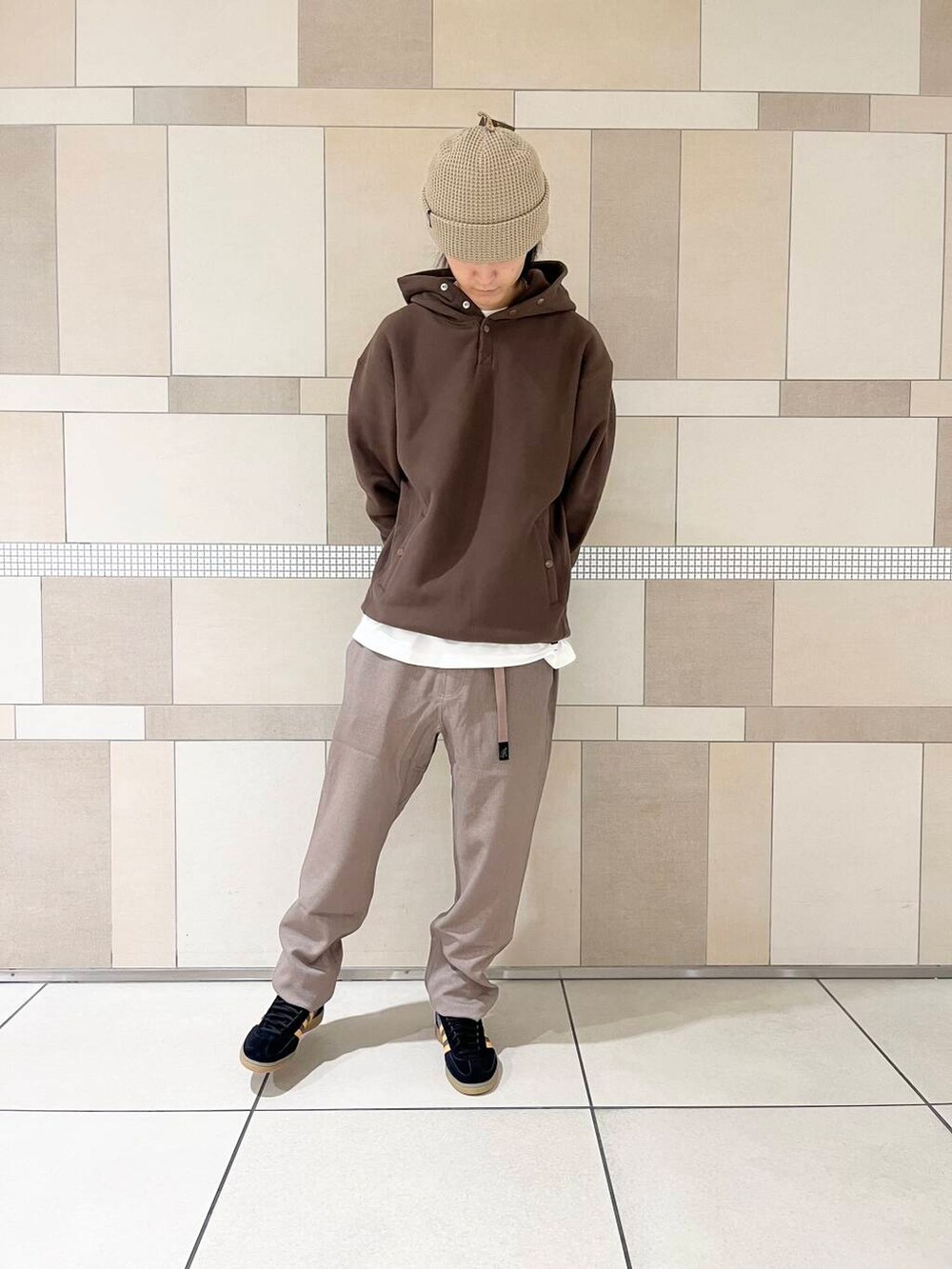 今回はグラミチのウールパンツと合わせ秋定番のコーデにしてみました。さらにレイヤーすることでこなれ感◎です!