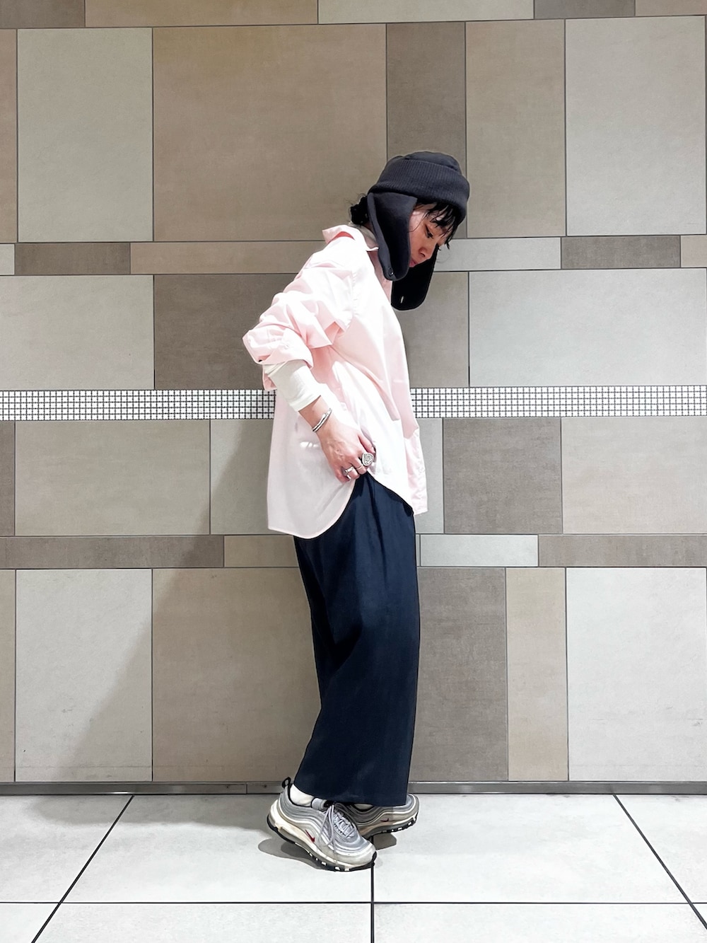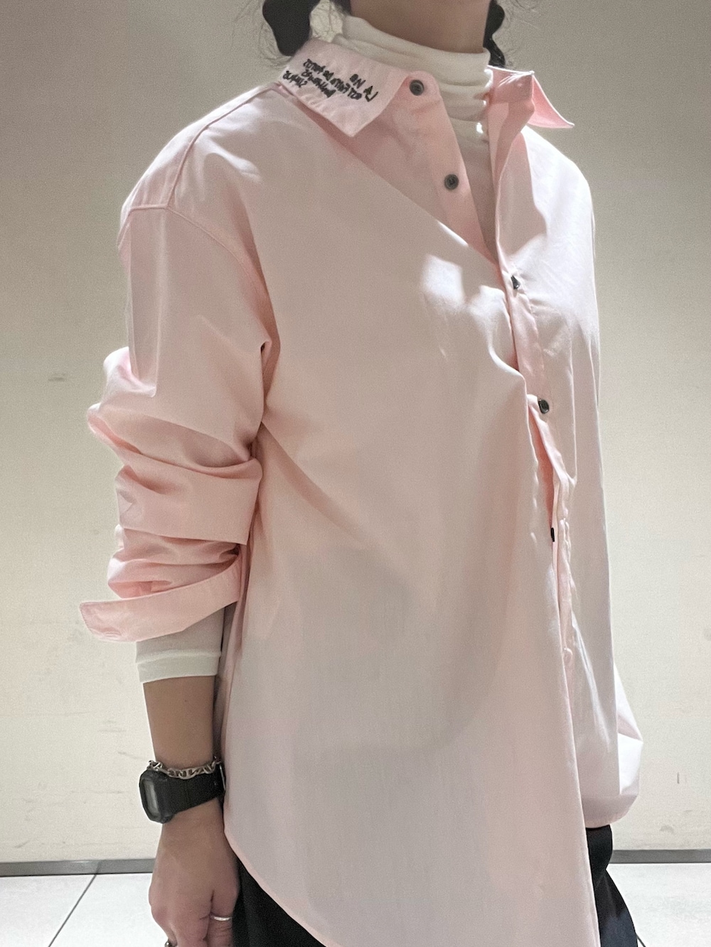ピンクとブルーの2色展開で、これからの時期はニットの中に着て首元まで個性あふれるコーデが楽しめます♪