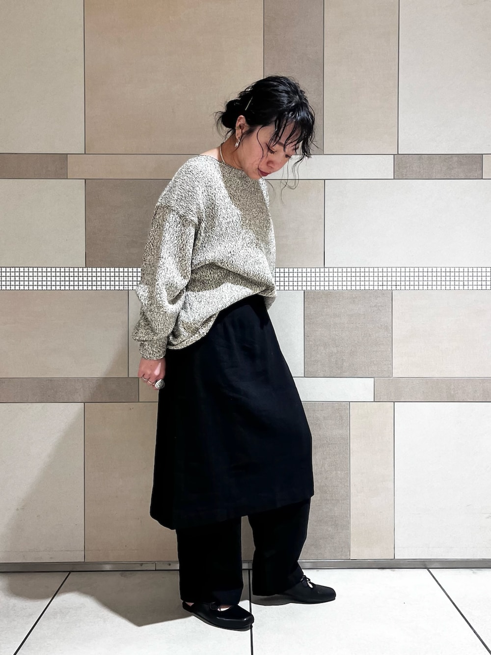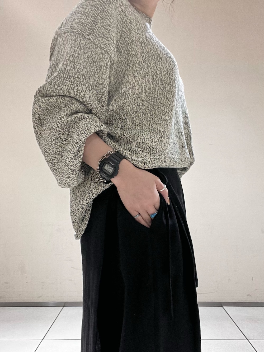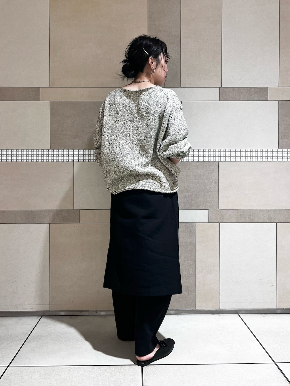 ミックスヤーンのコットンニットは、ニュアンスの効いた色味とくてっとした落ち感が魅力的