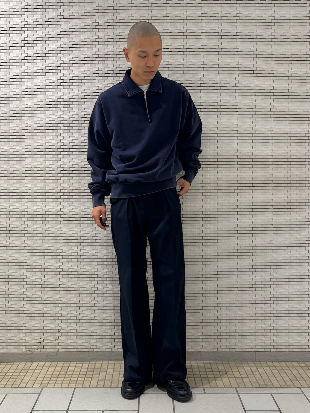 ハーフジップのスウェットは遊びがきくので個人的に大好きです