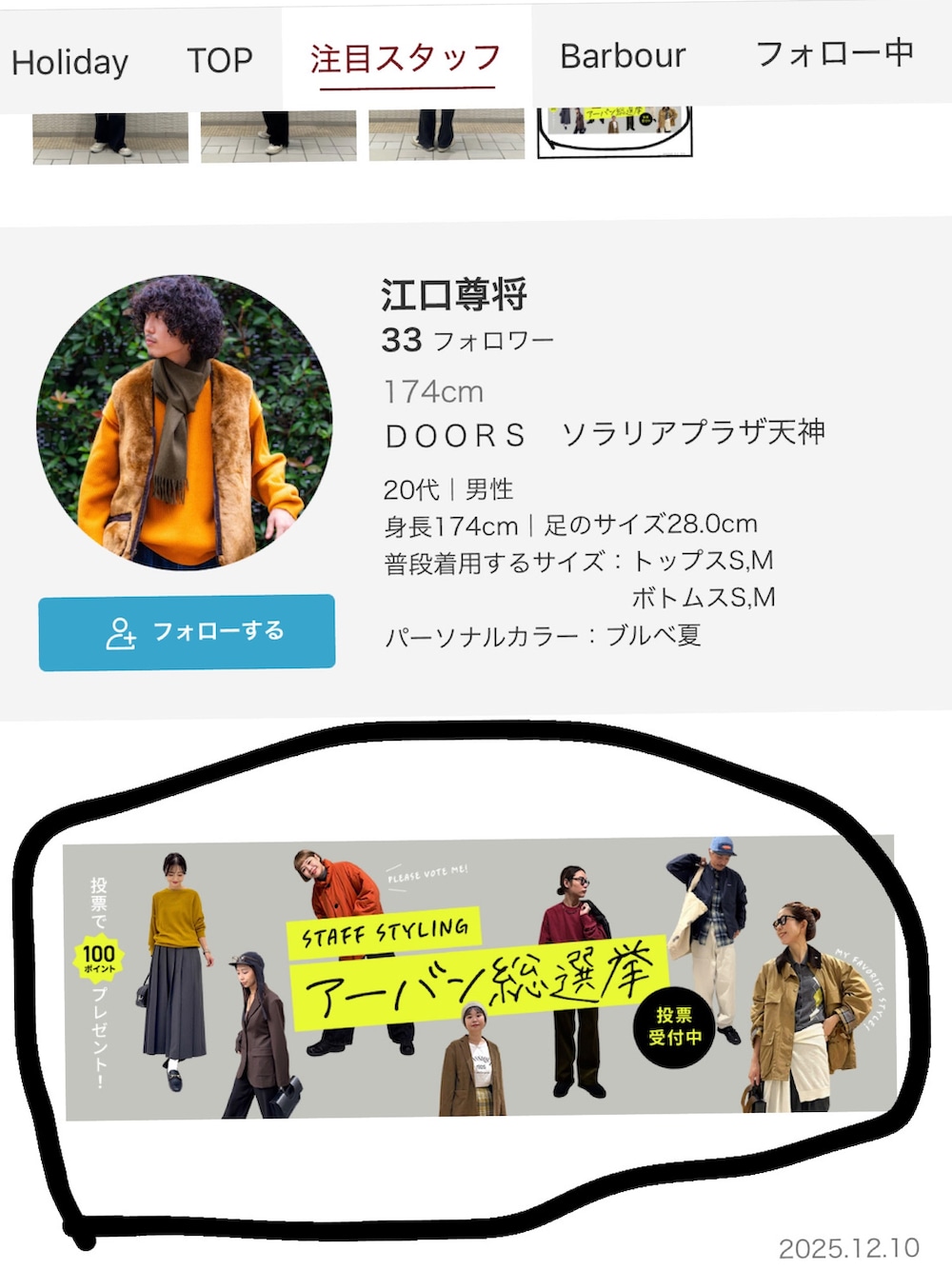 ②スタッフ一覧から投票するを押していただくと投票できます!