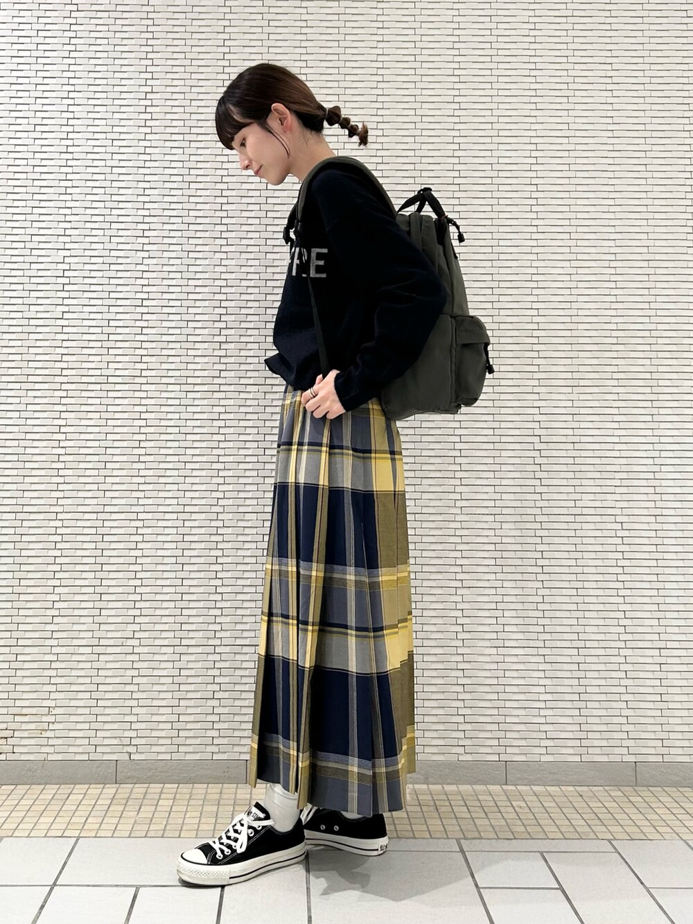 ストレートに落ち感が出るので、広がりすぎずスッキリなシルエットで着ていただけます。