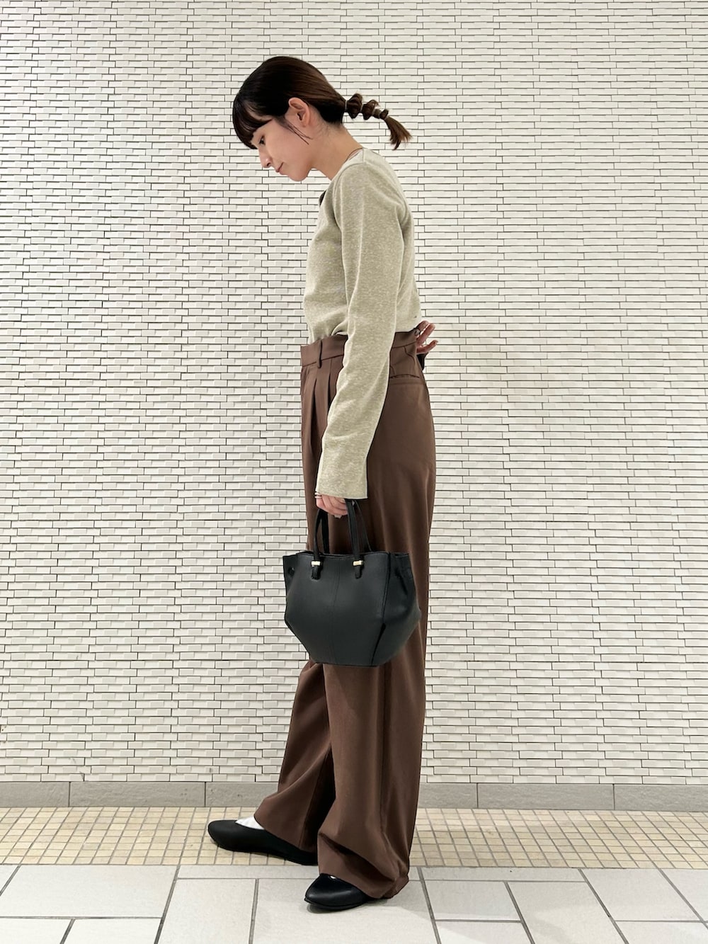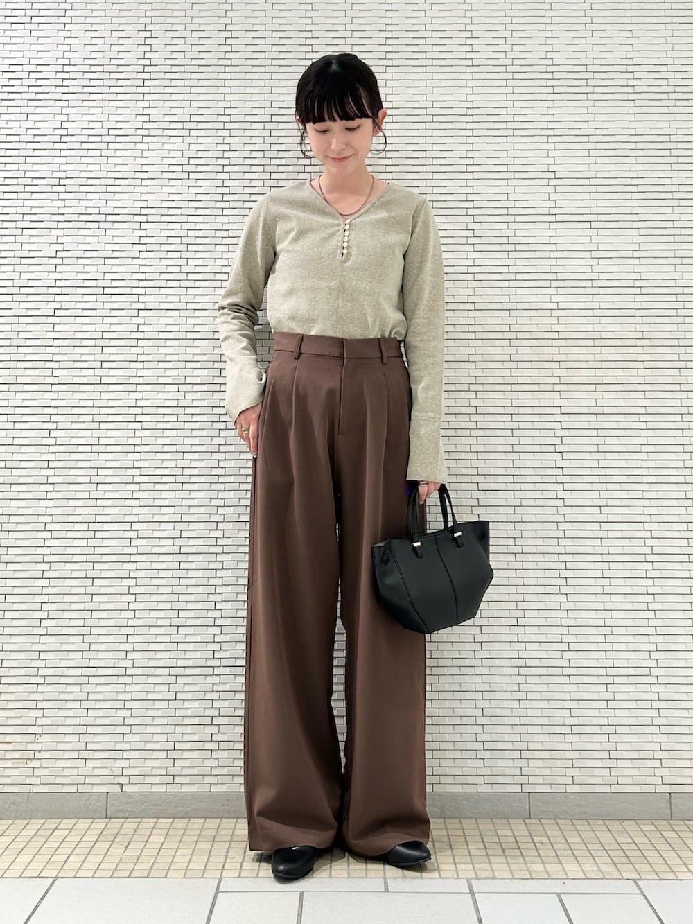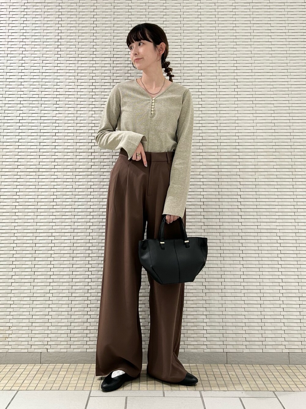 トラウザーパンツと合わせて女性らしくキレイめなスタイルにしました!