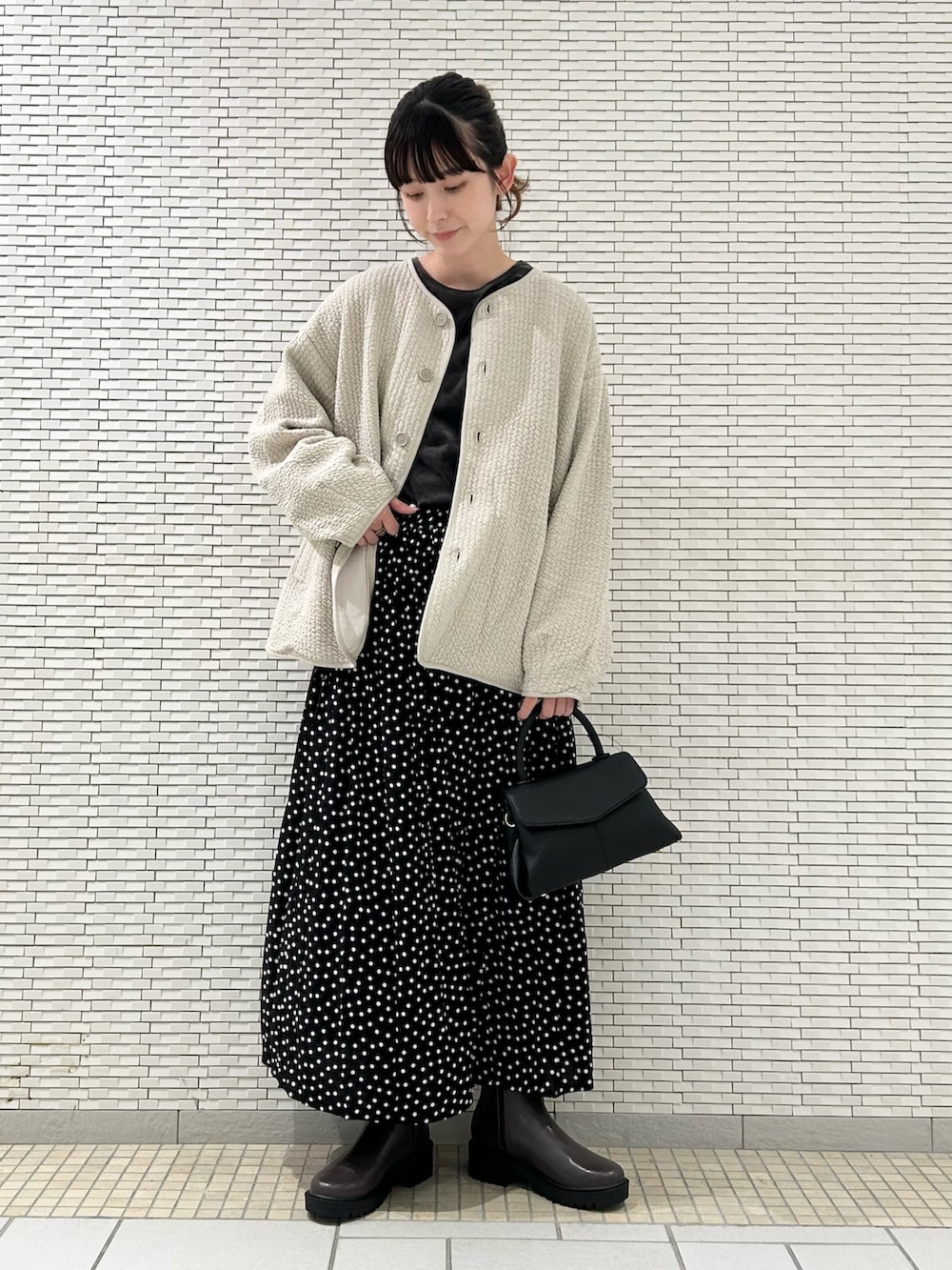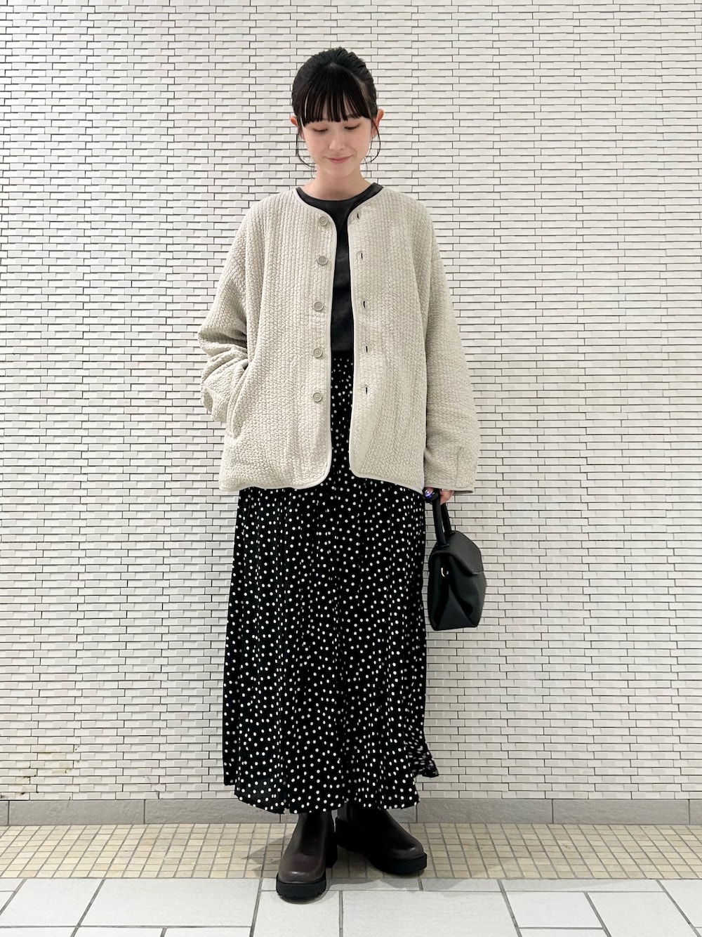 ドットが細かいので甘くなりすぎず、カジュアル使いもしやすいデザインです。