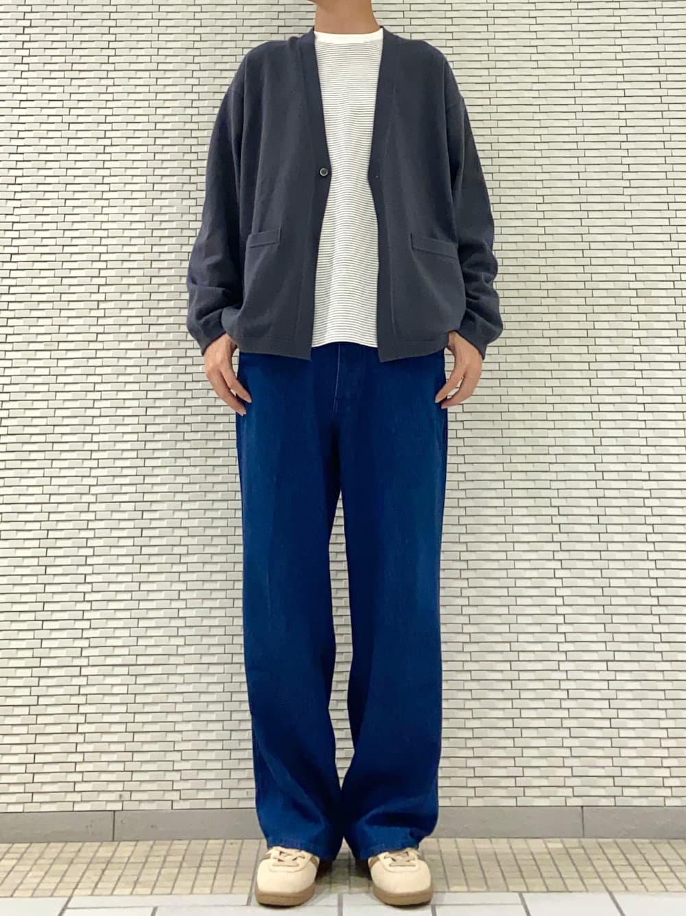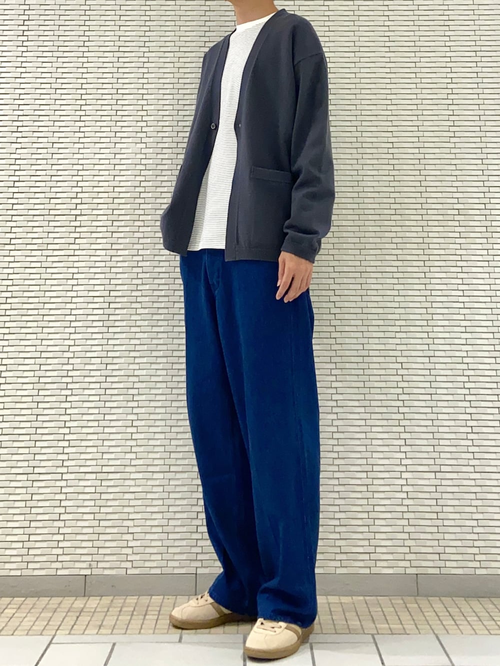 カーディガンにデニムを合わせて