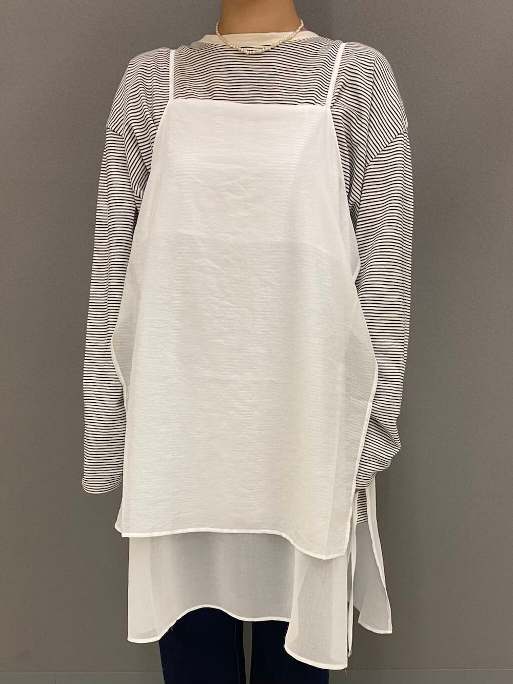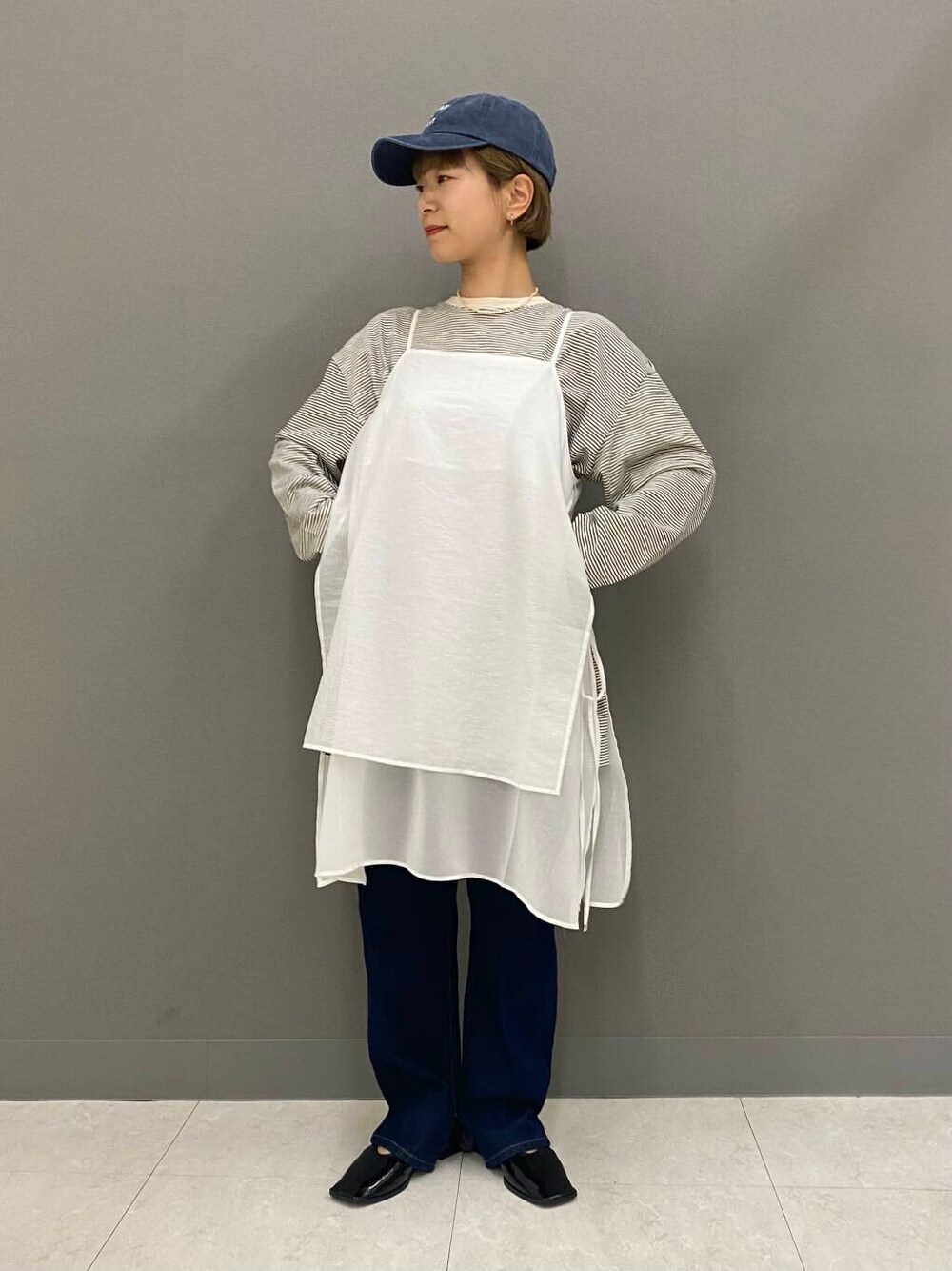 そんな思いを叶える為に、デニムとTシャツの上にはシアーワンピースを重ねましょう!!