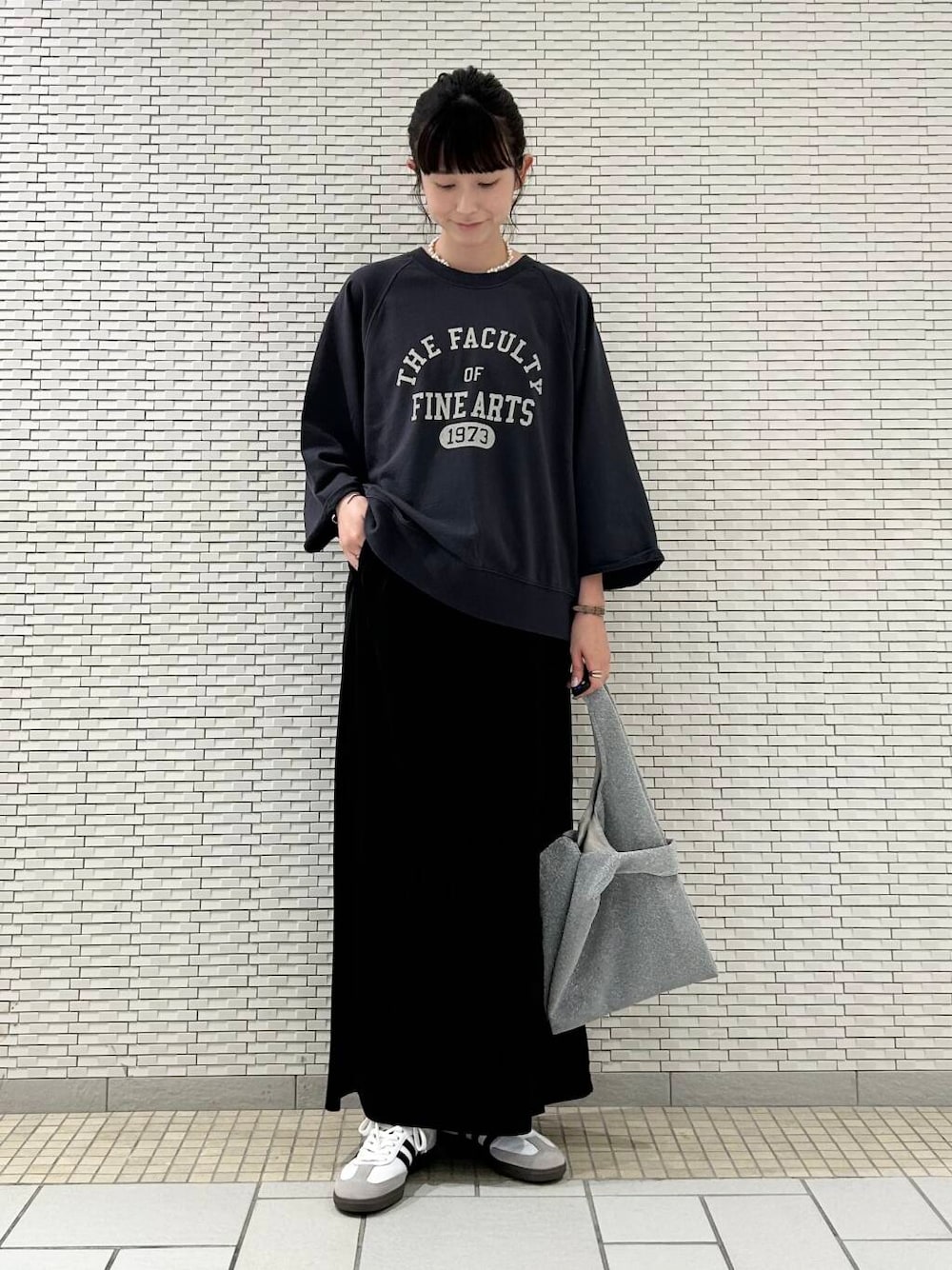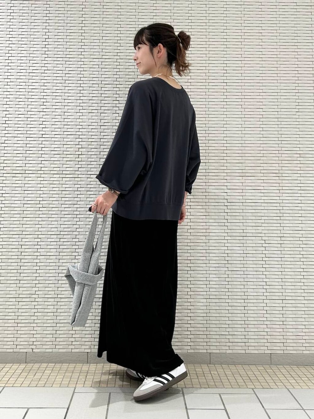 トップスはゆったりなサイズ感ですが、落ち感がしっかりとでるのでスカートやワイドパンツ合わせでもスッキリ見えします◎