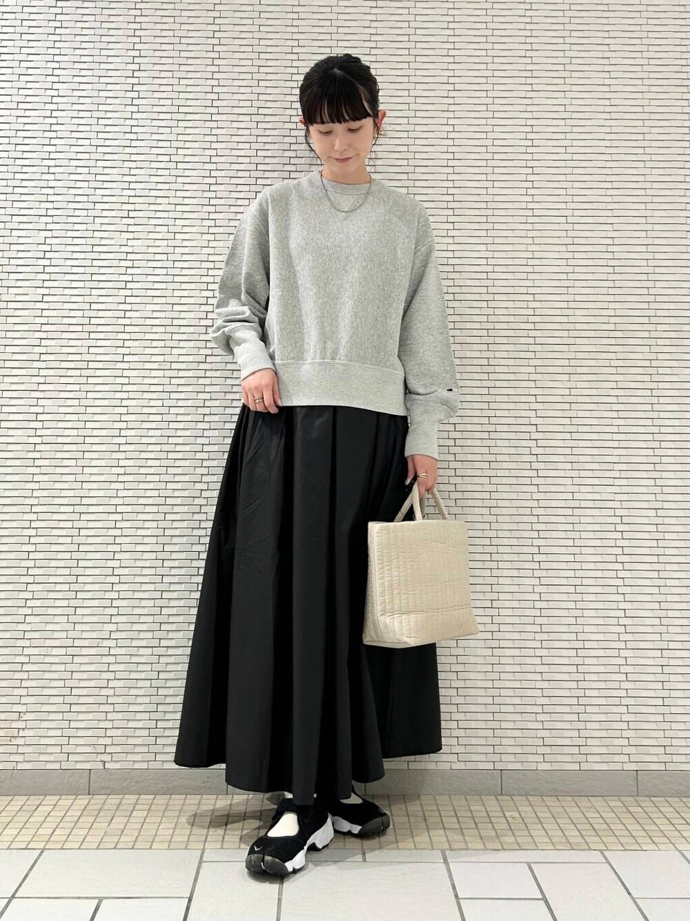 着丈がコンパクトなのでスカート合わせもスッキリ着ていただけます!