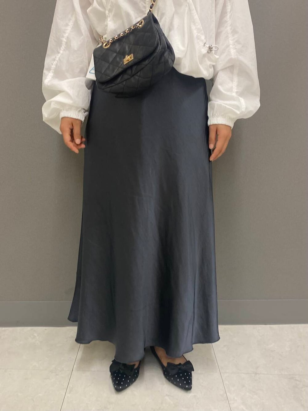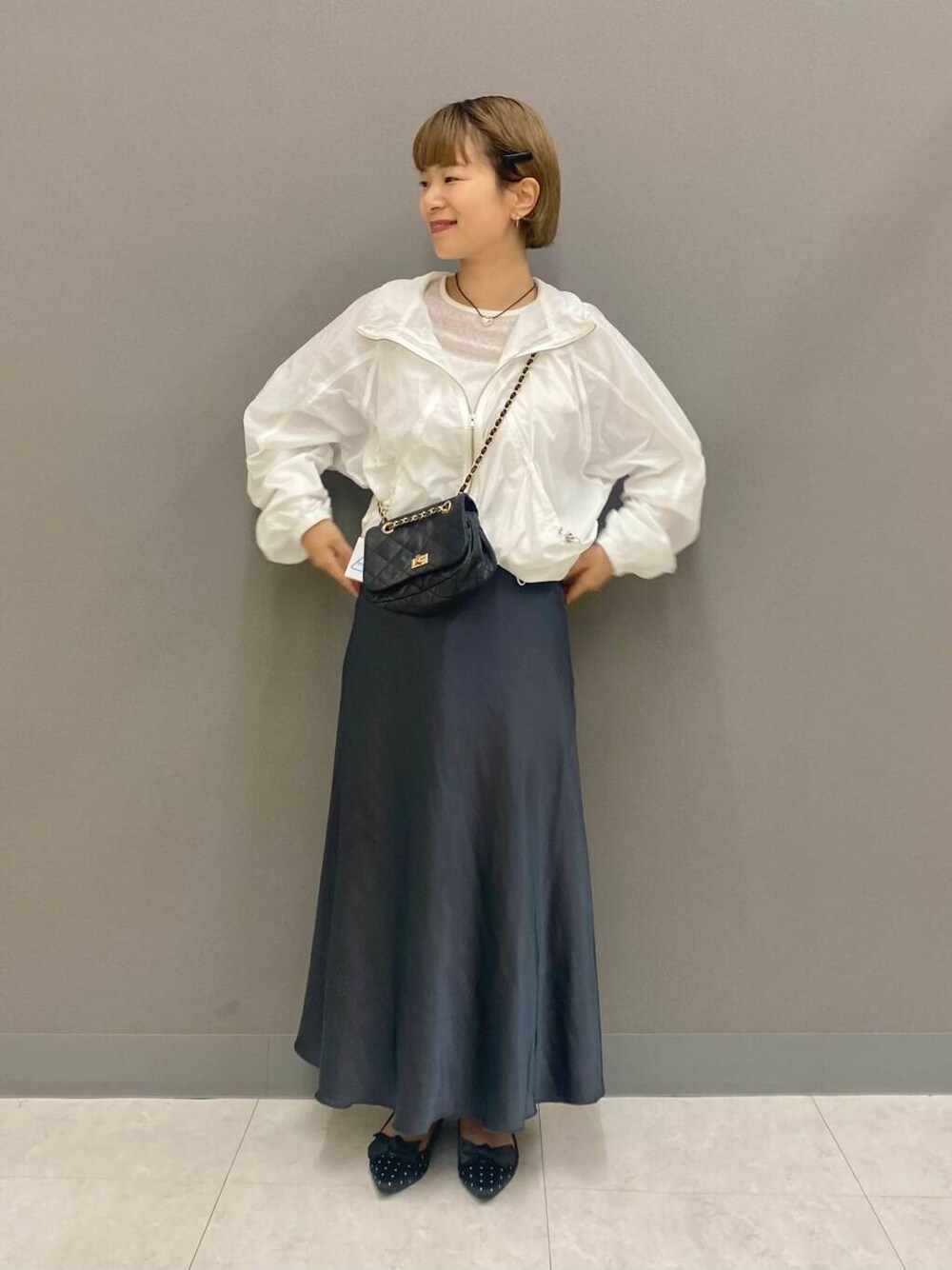 私はナイロンスカートと合わせて女性らしさをプラスしました!