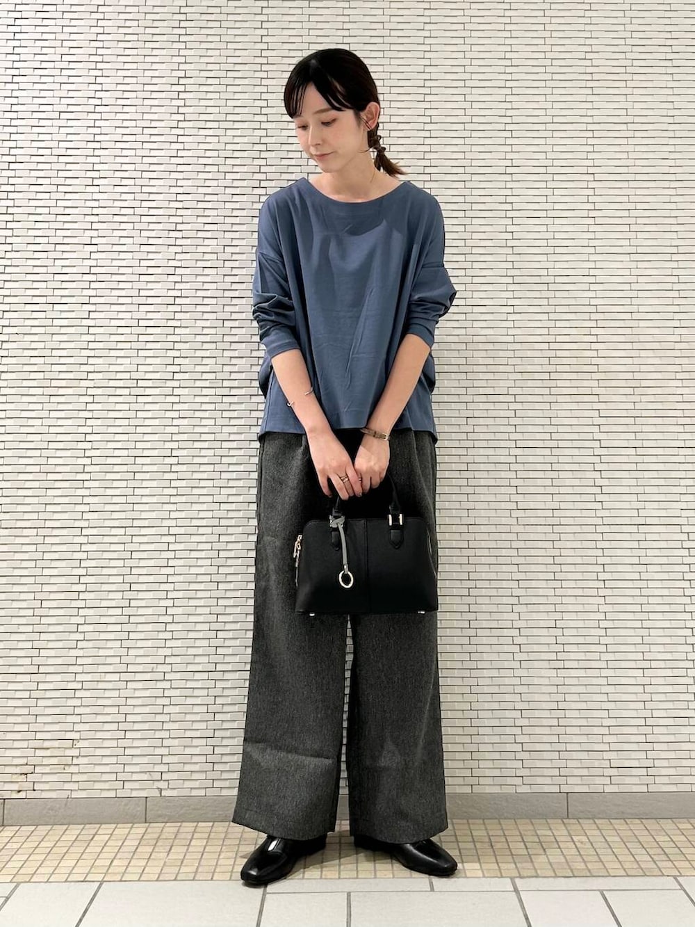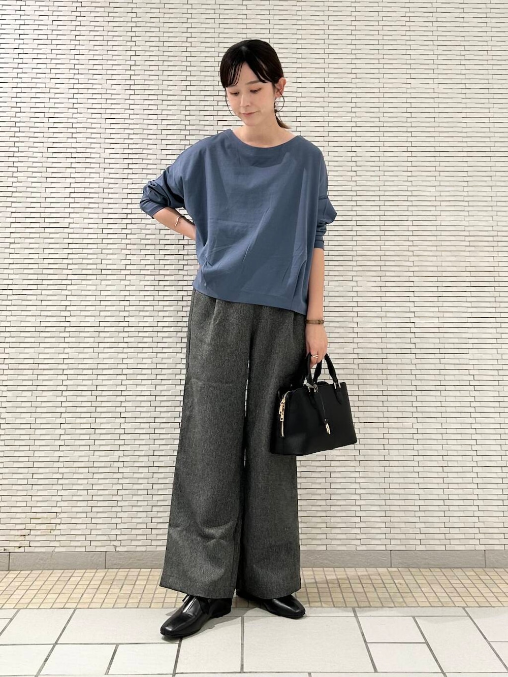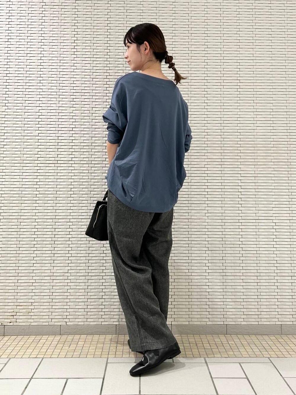 ポリエステル素材なのでシワが気になりにくく、ゆったりストレートなラインで着ていただけます。