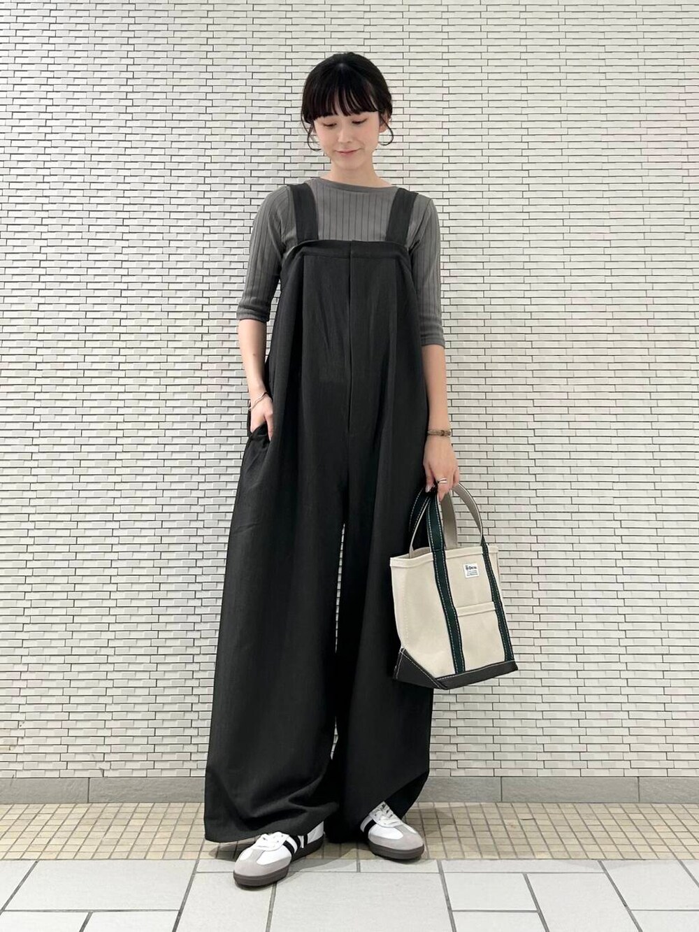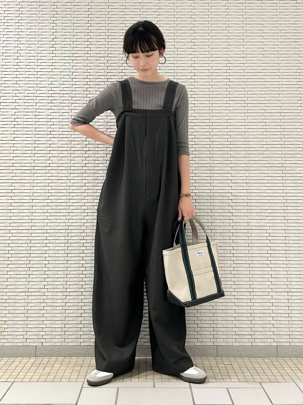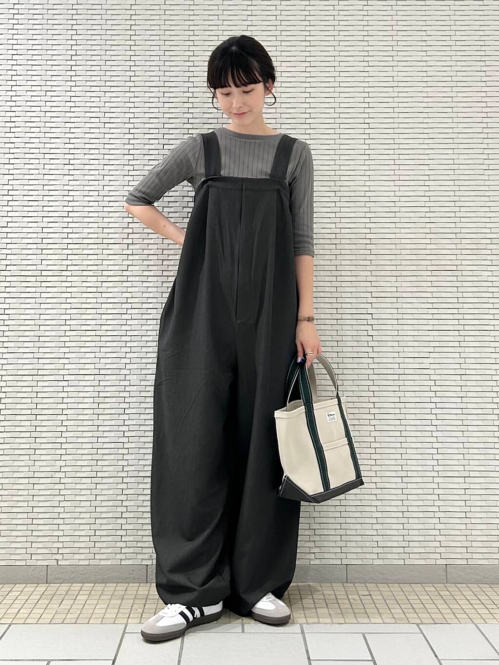 ボリュームのあるサロペットなのでインナーはタイトなスッキリ見えするカットソーを合わせました♪