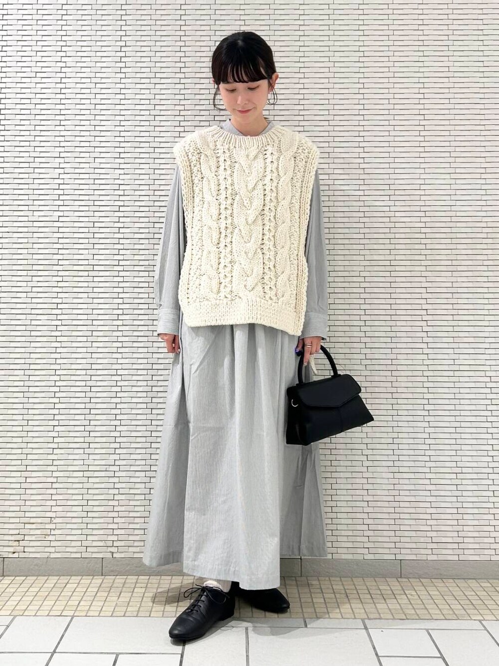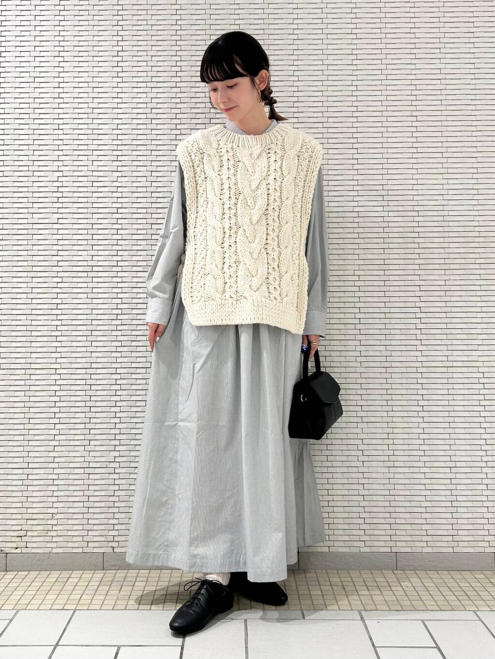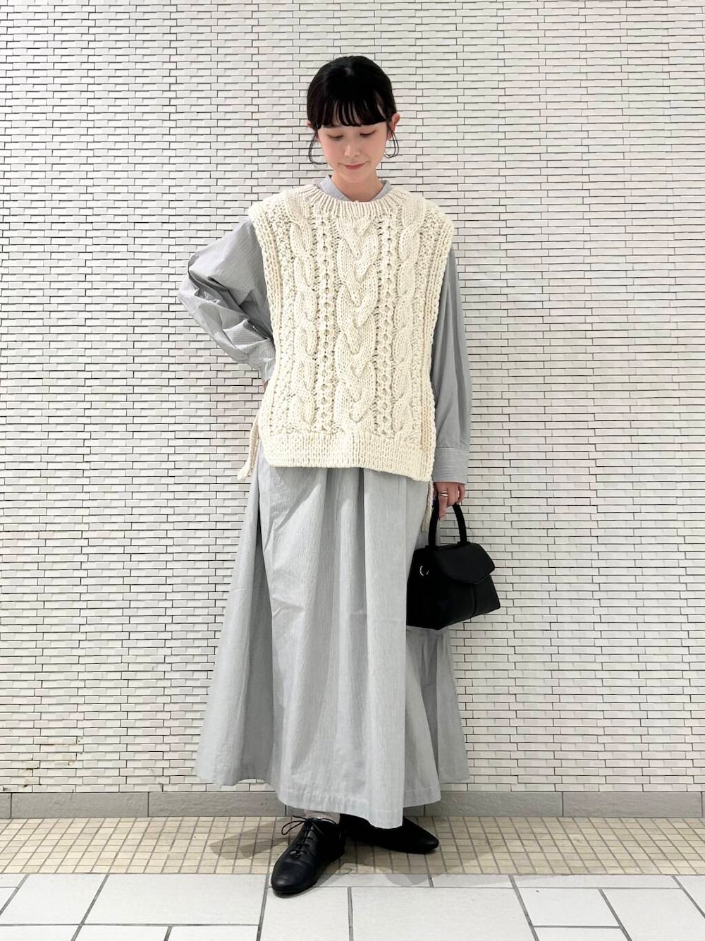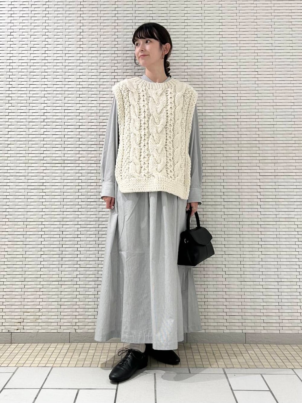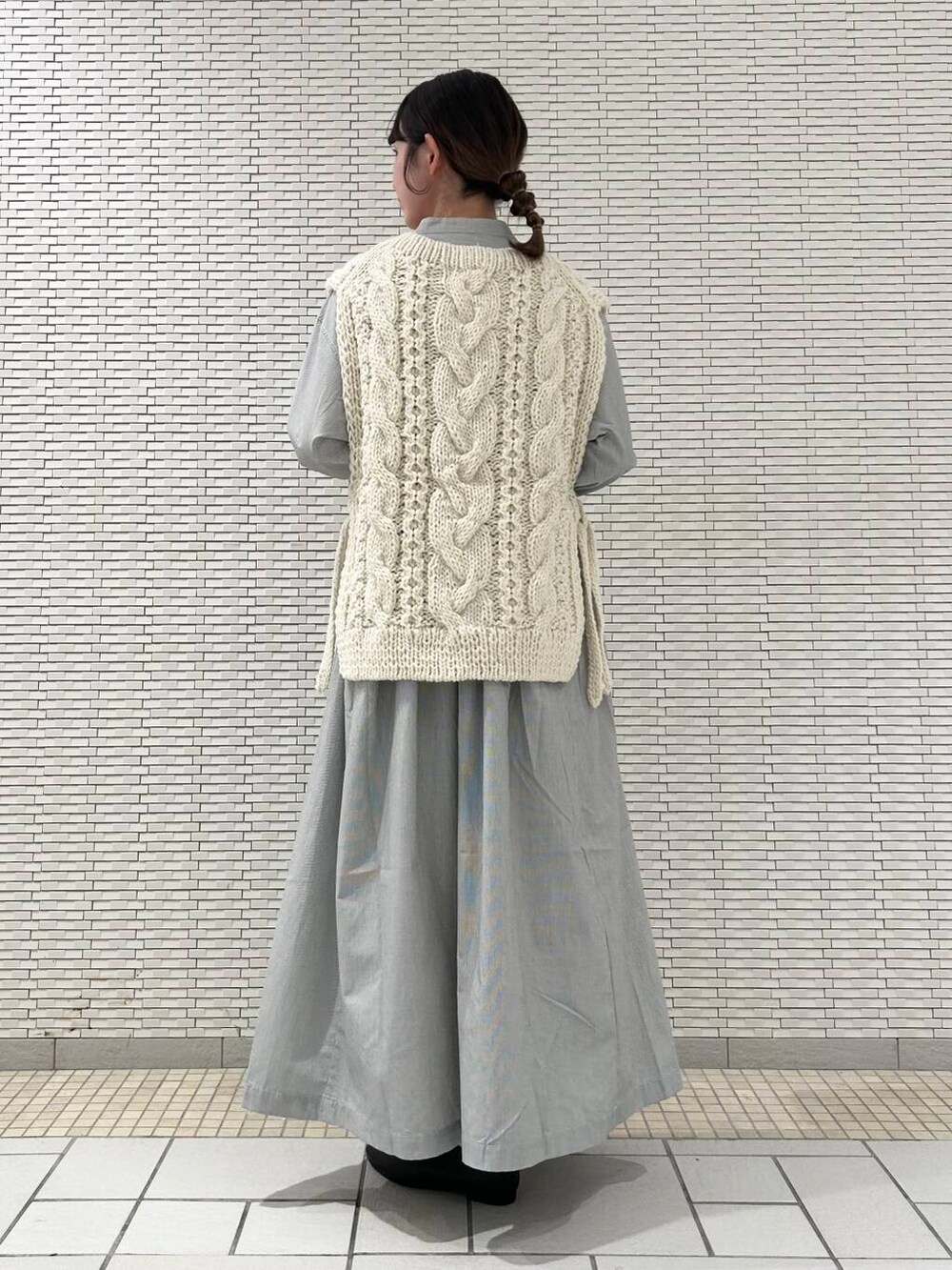 ニットベストは両脇が開いているので、ワイドなシルエットのインナーと合わせても締め付け感なくゆったりと着ていただけます。