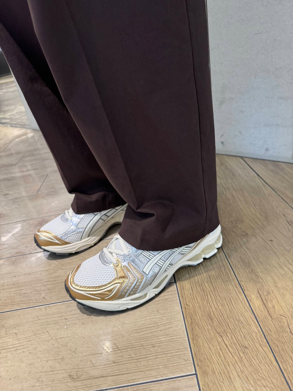 白、金、銀のような明るいスニーカーはコーデが暗くなりすぎた時やどこかシンプルになりすぎた時に重宝します!