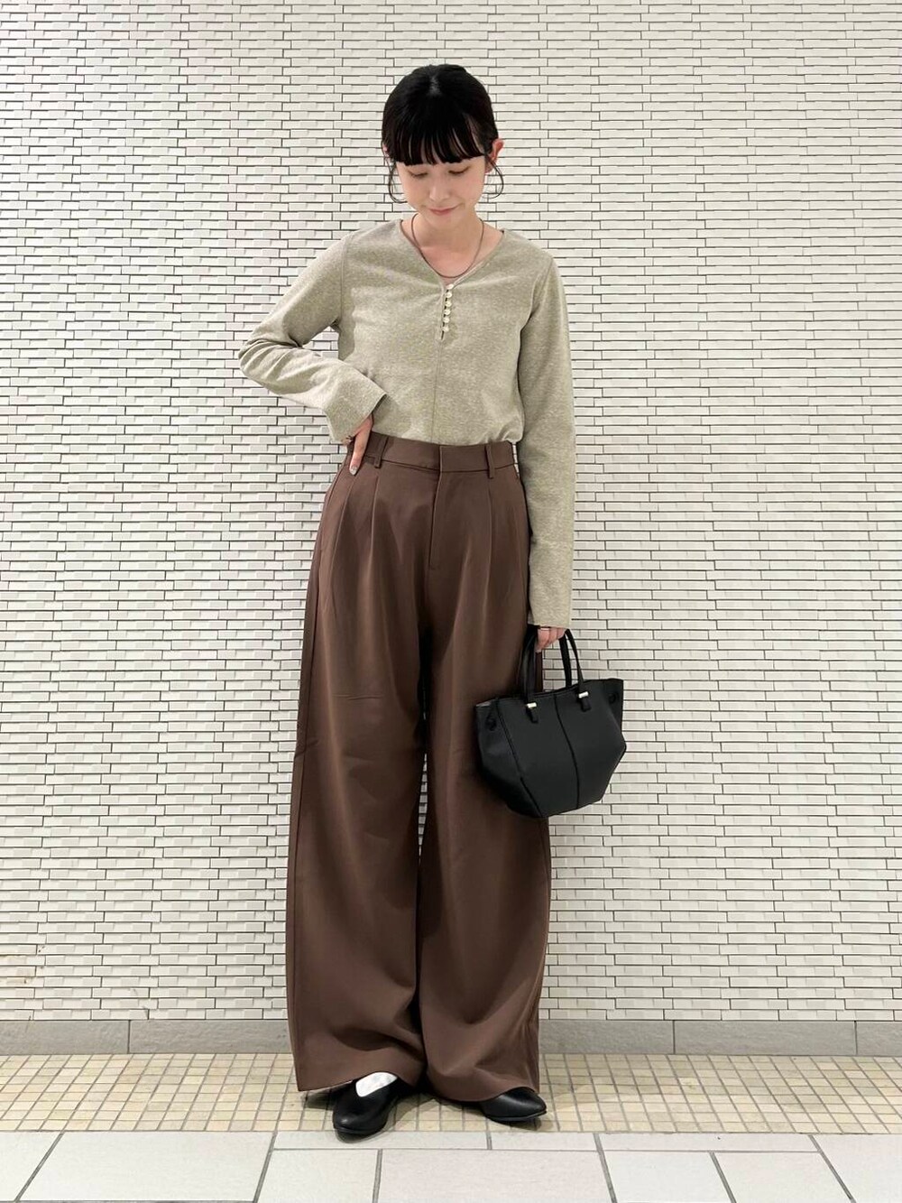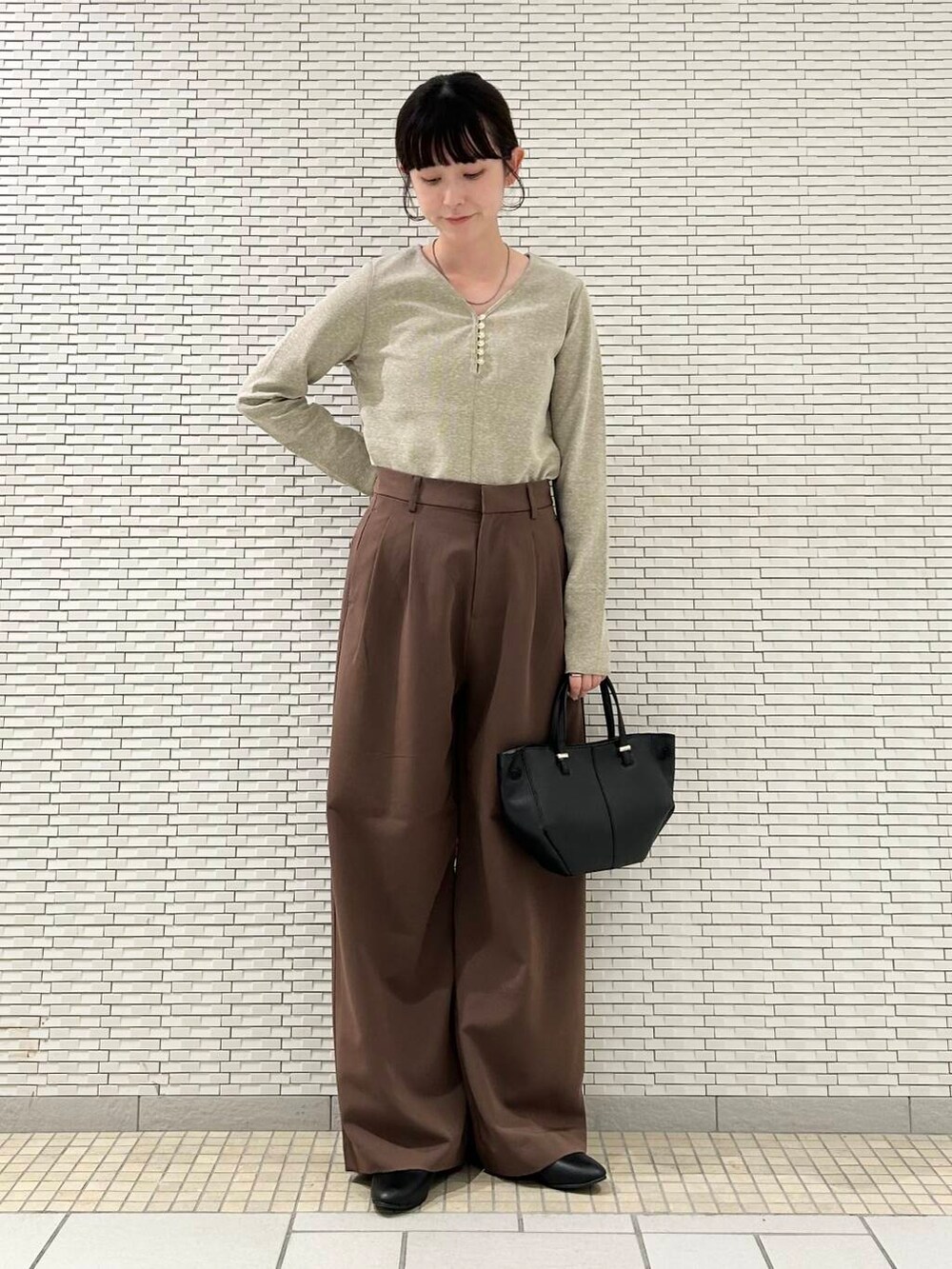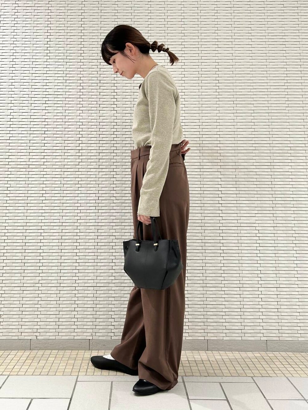 トラウザーパンツと合わせて女性らしくキレイめなスタイルにしました!