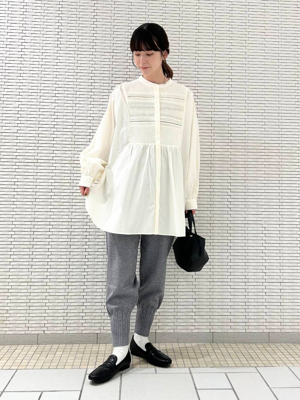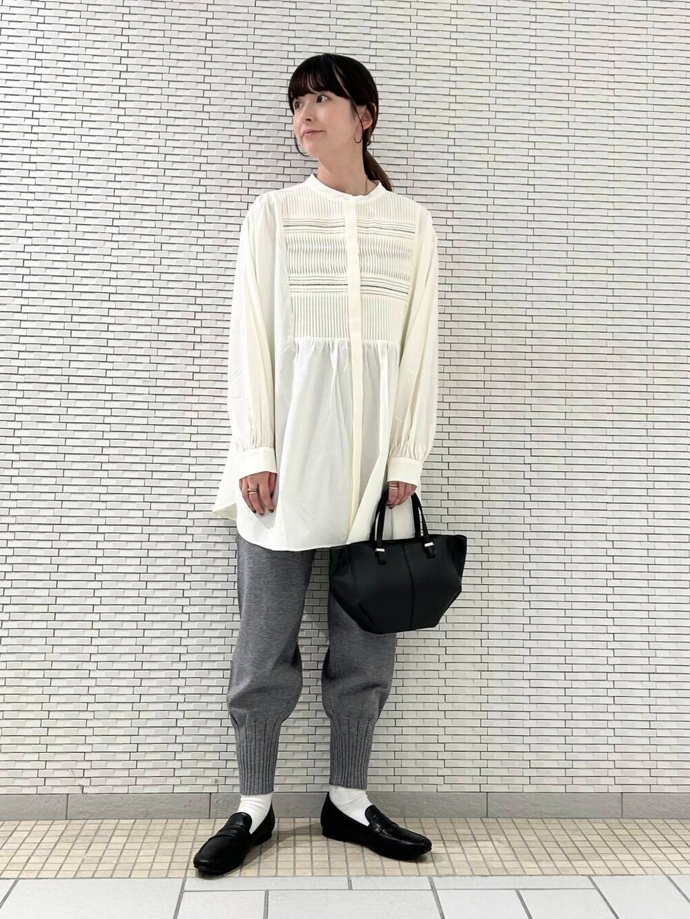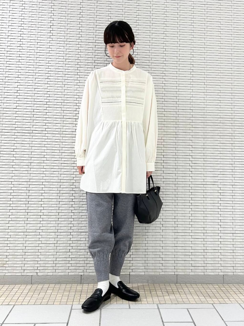 中にタートルネックを合わせたり、上からカーディガンを羽織ったり、いろいろなコーデを楽しめる一枚です◎
