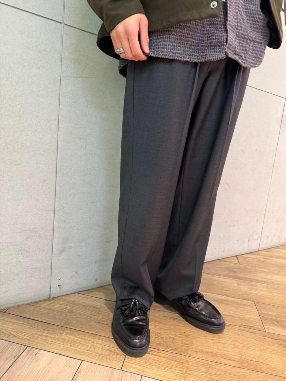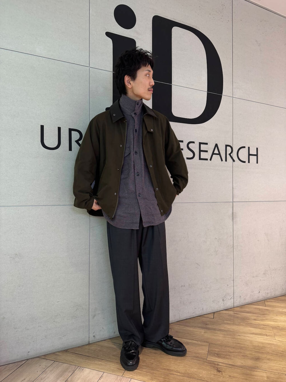 CPOシャツは襟付きのベーシックな使い方はもちろん!コートやジャケットの中に入れて今回のようにスタンドカラーにして着用するのもオススメです!