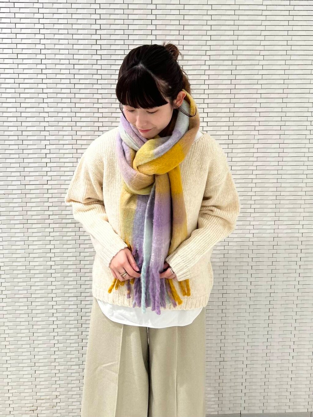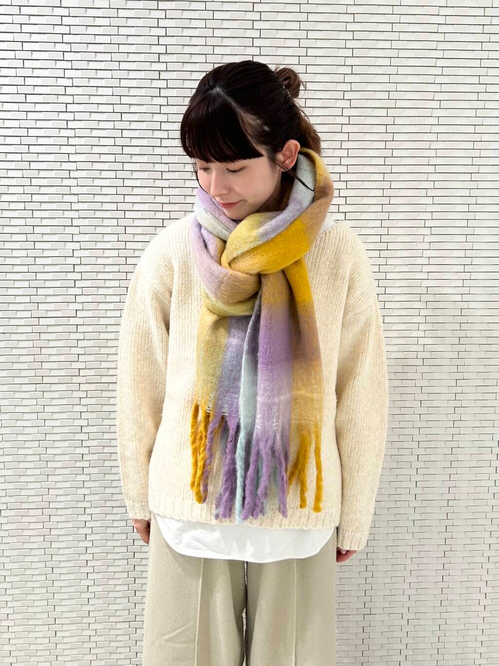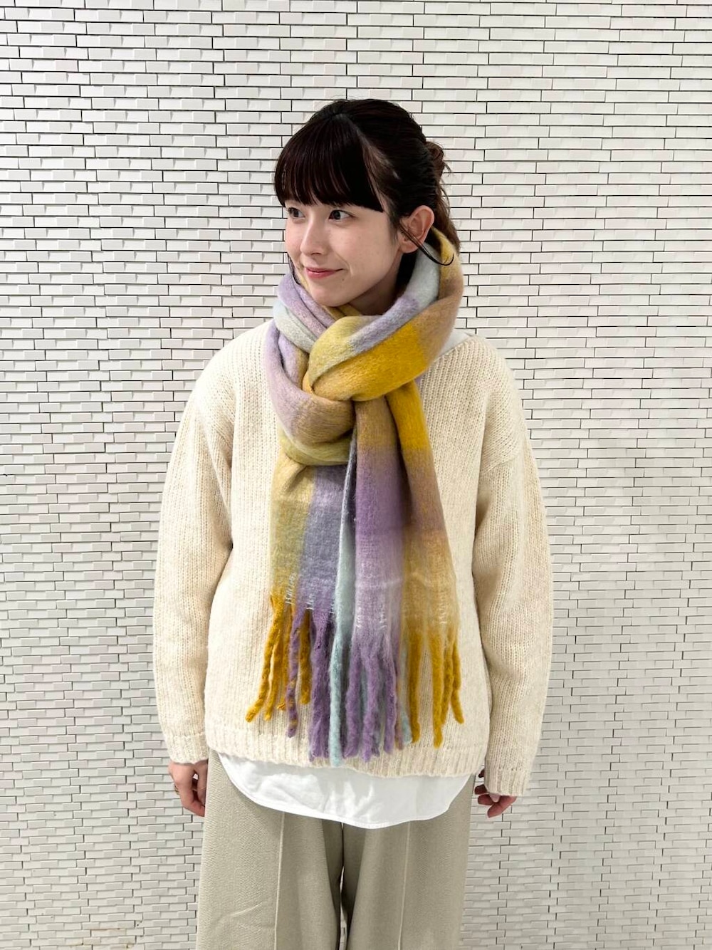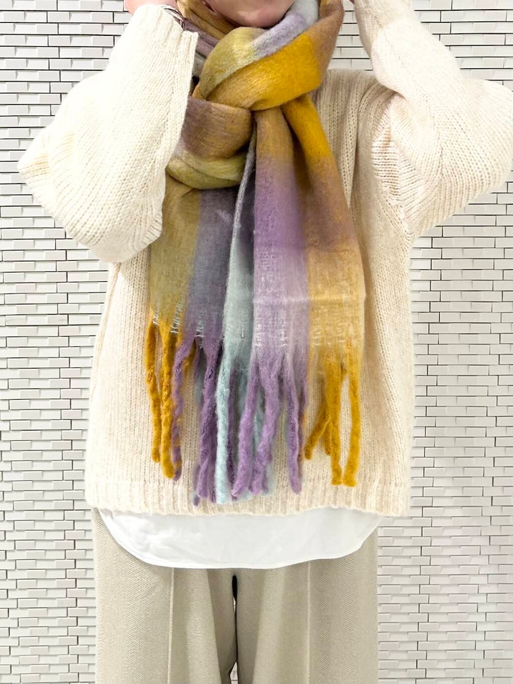 マフラーはもちもちふわふわな肌触りで、とても軽い巻き心地です◎