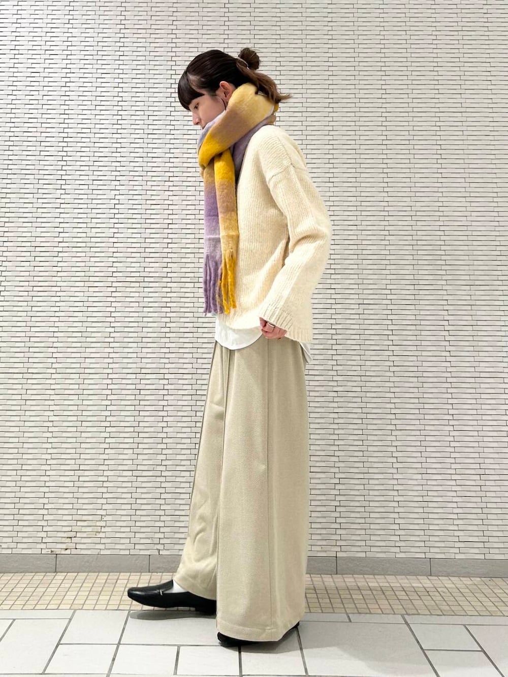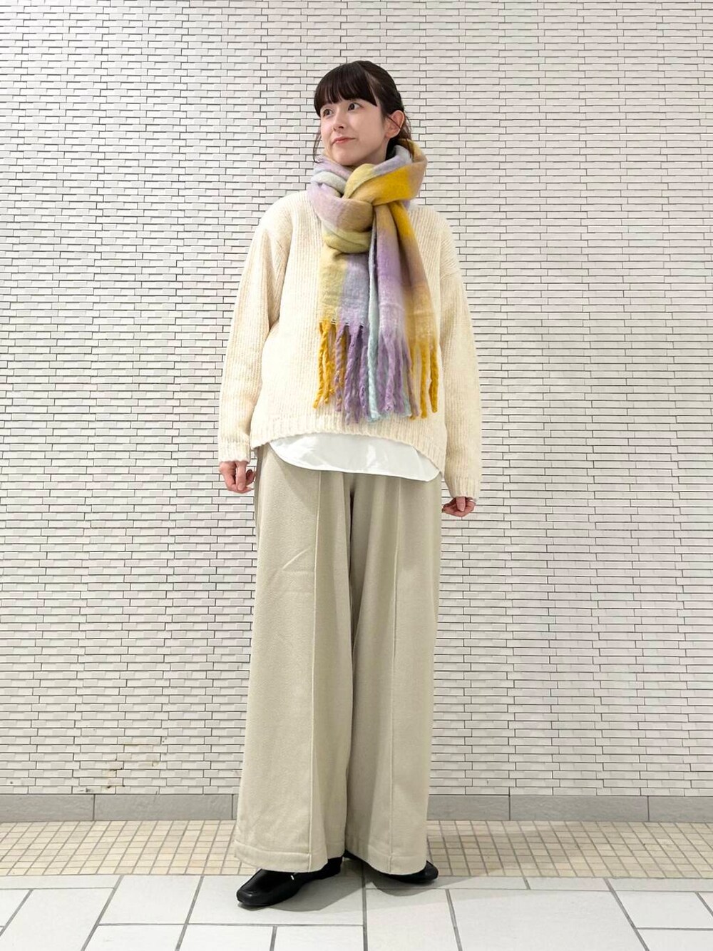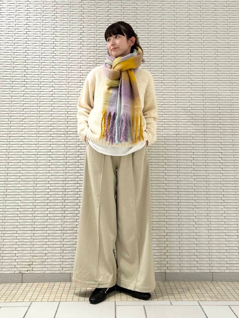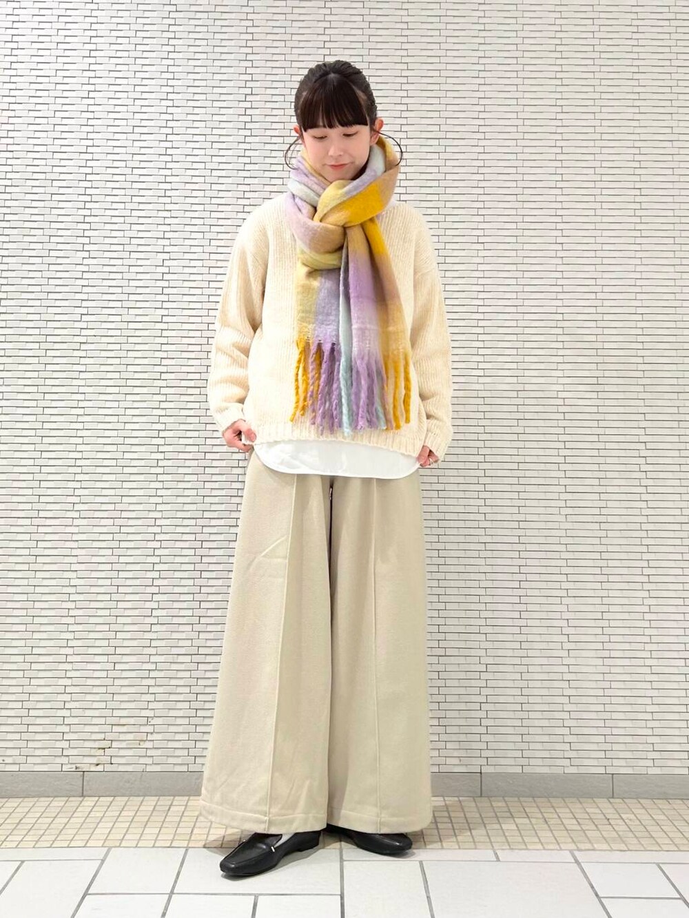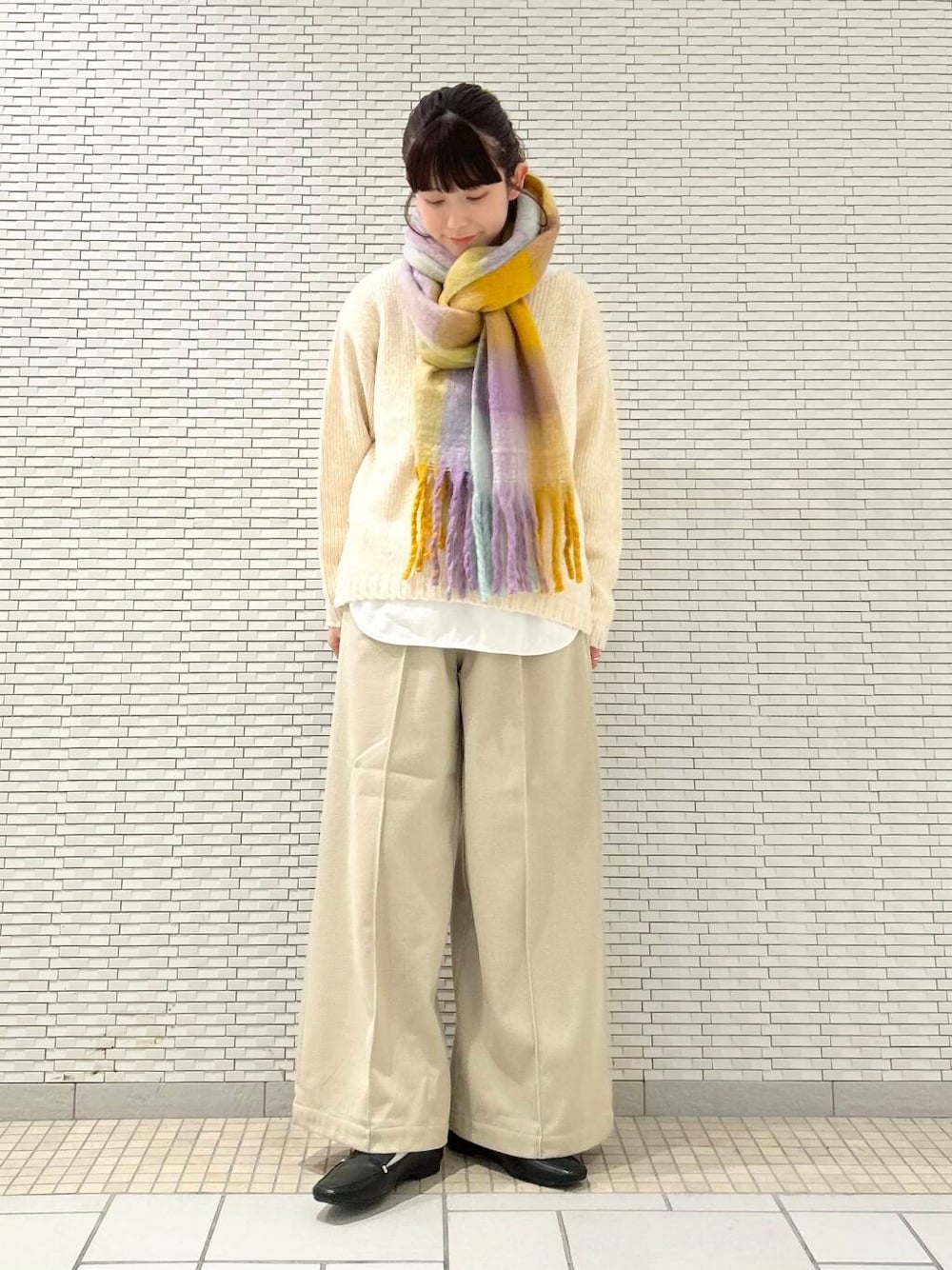マフラーはもちもちふわふわな肌触りで、とても軽い巻き心地です◎