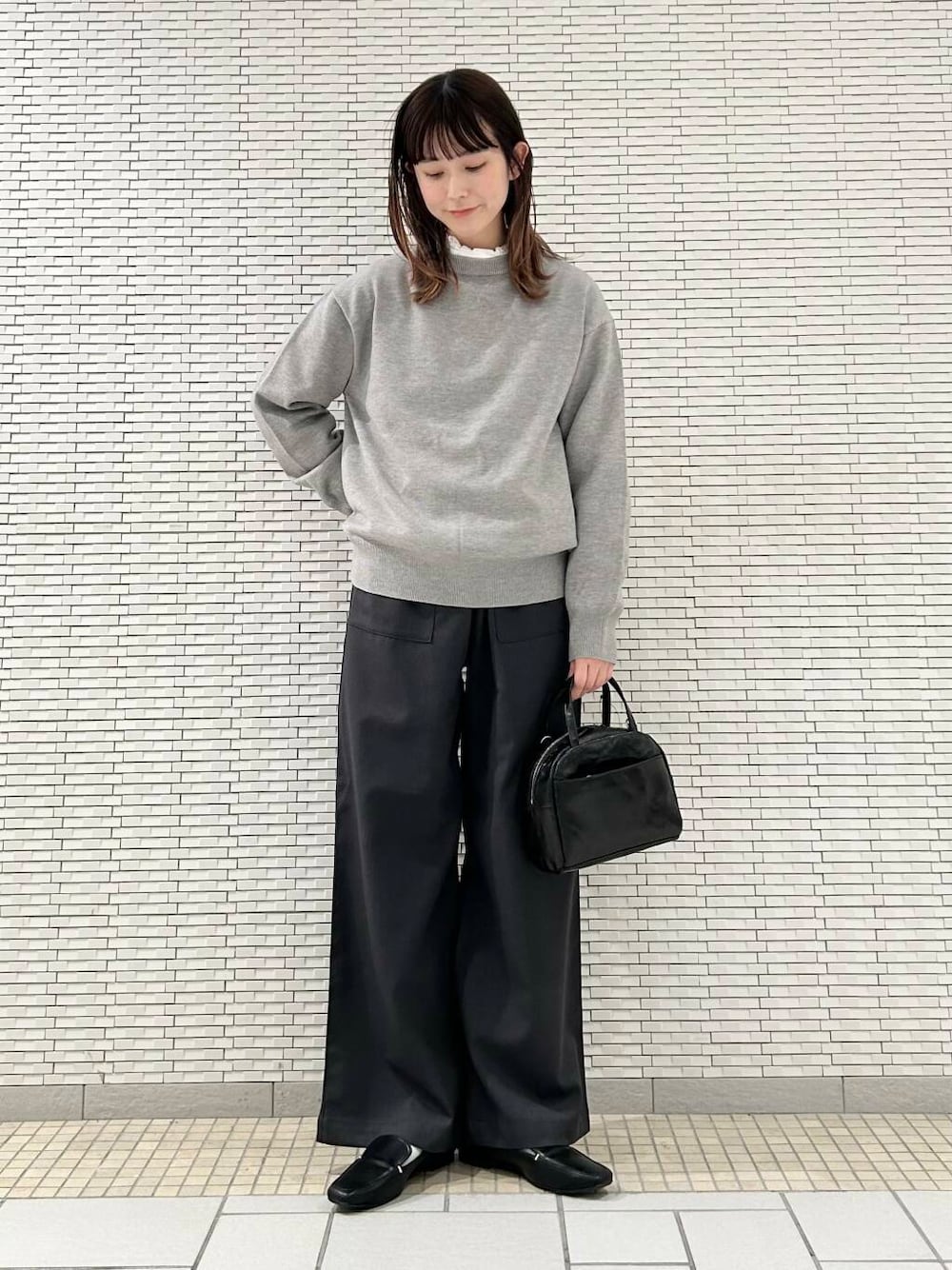 ニットはスウェットのようなシルエットでゆったりと着ていただける身幅です。
