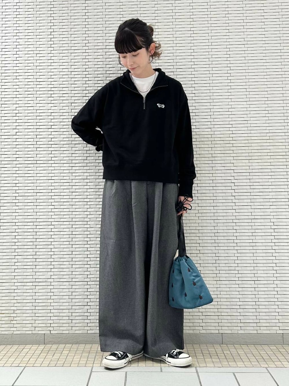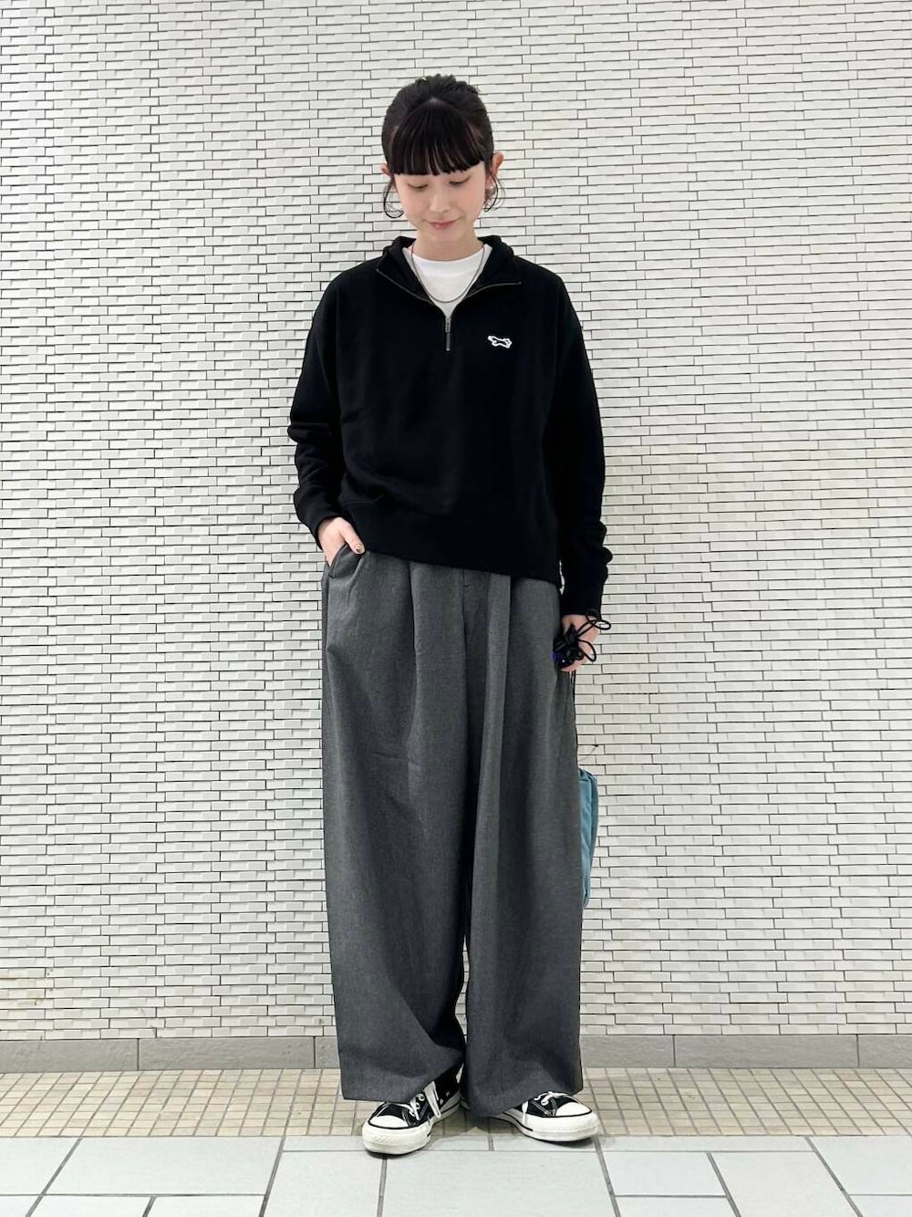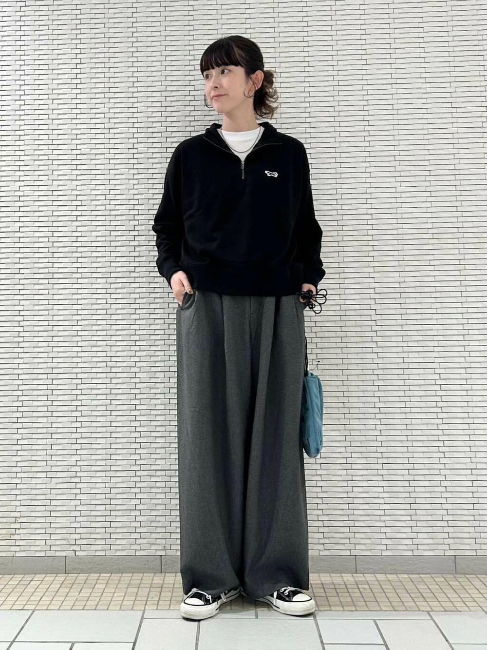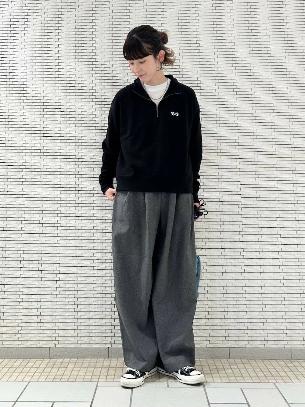 ハーフジップのスウェットはジップを閉めた状態でも、開けてインナーを見せても可愛いので、着回し抜群なアイテムです⭐️
