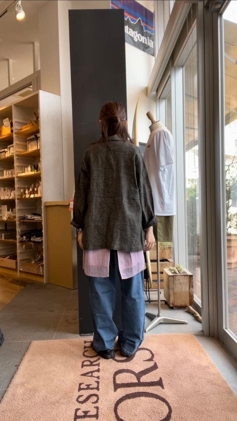 羽織はかぐれのジャケットで、今の時期からでもちょっとした羽織感覚で合わせられます!