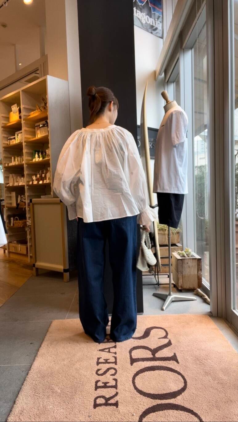 ワイドな形が特徴的で、ゆったりめですが大きすぎないので小柄な方でも気軽に着用できます。