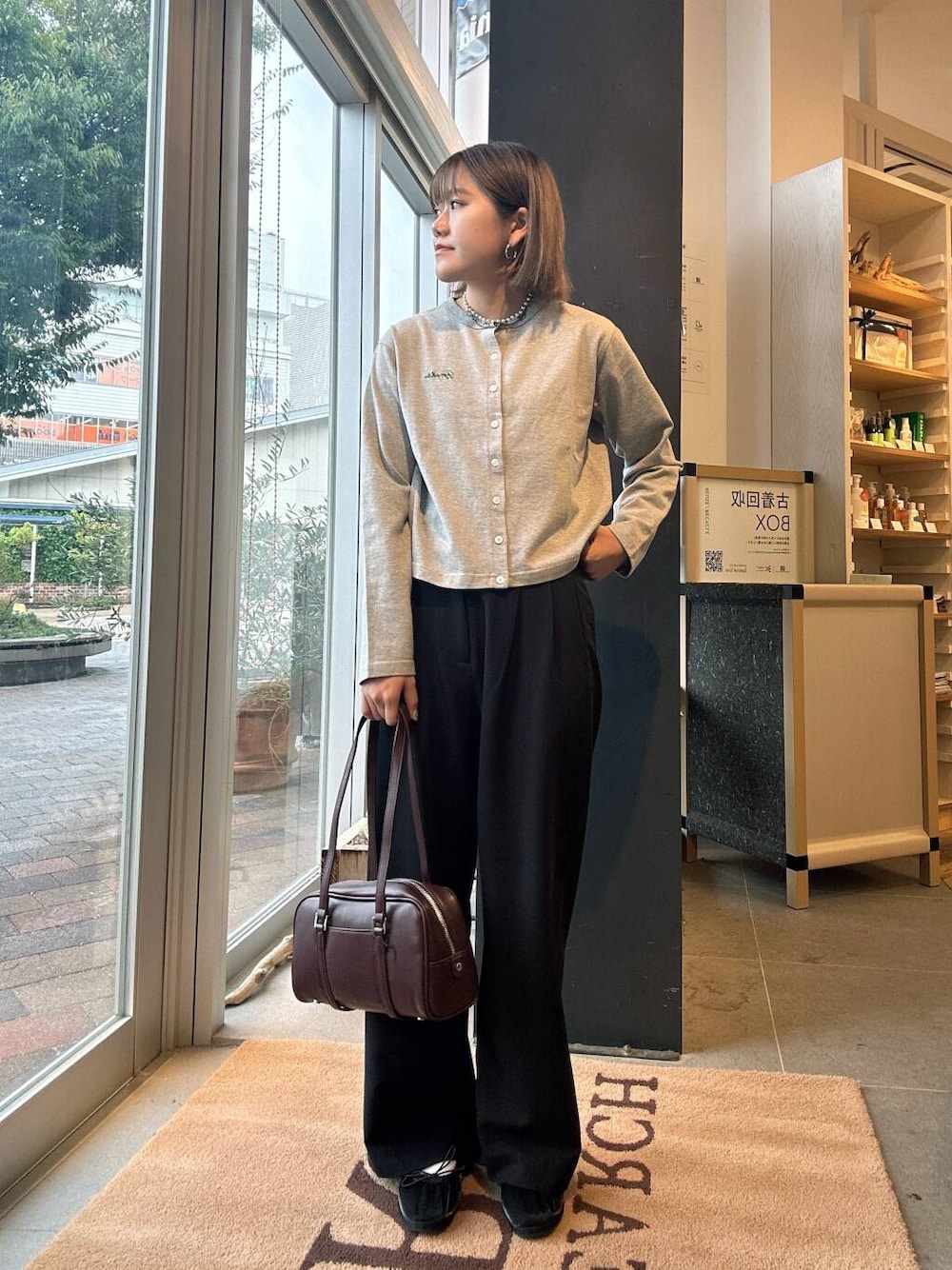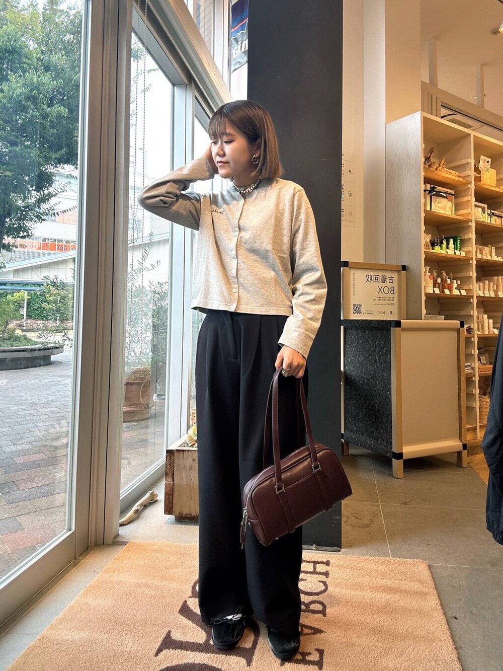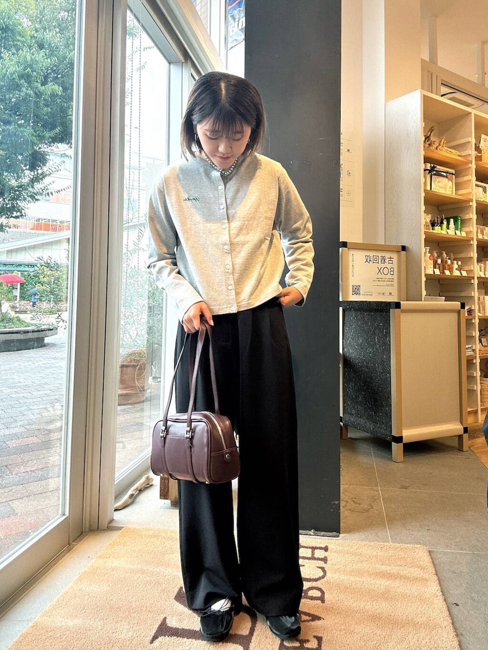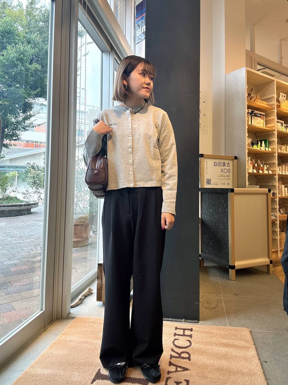 コンパクトな形なため、ワイドパンツやボリュームのあるスカートなどとも合わせやすいです◎