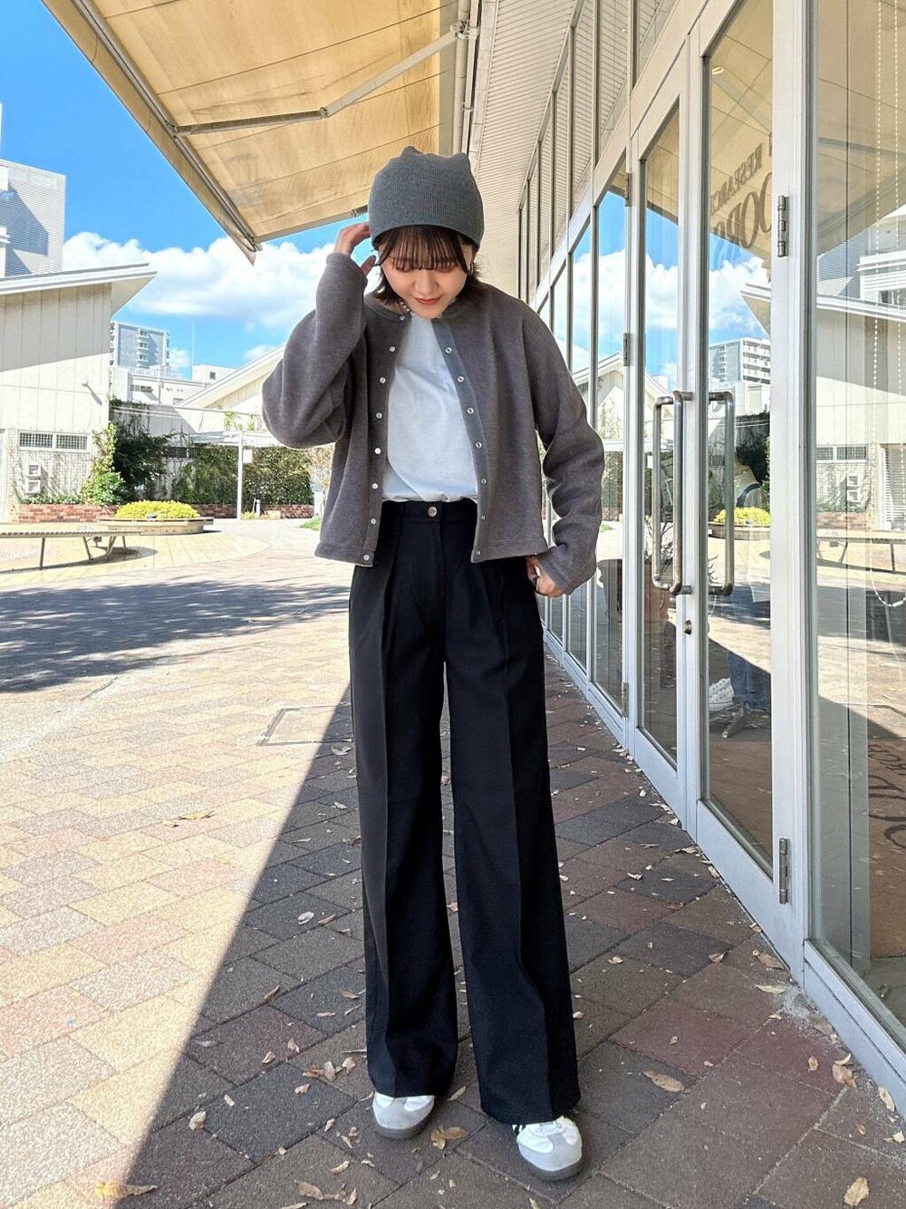 ショート丈なので、パンツやボリュームのあるスカートなどと合わせてもスッキリ着れます👍