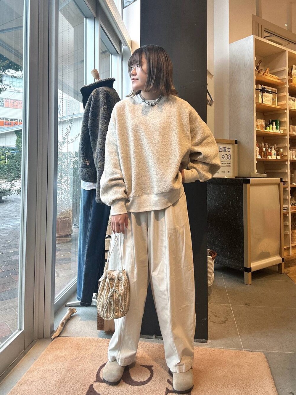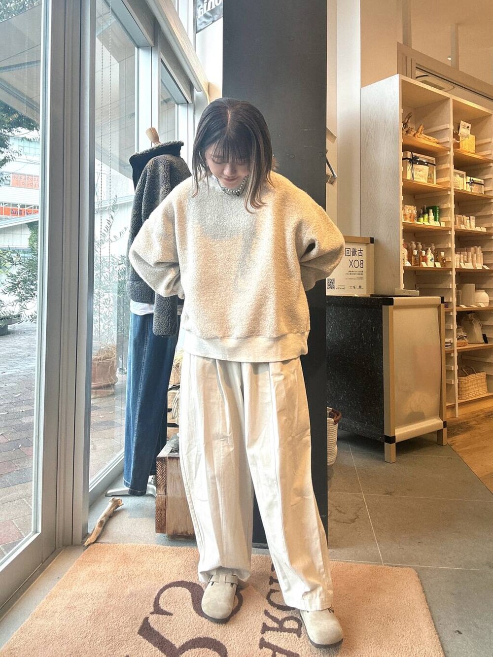 トップスはシンプルながら毛足の短いボアが存在感を出してくれます👍