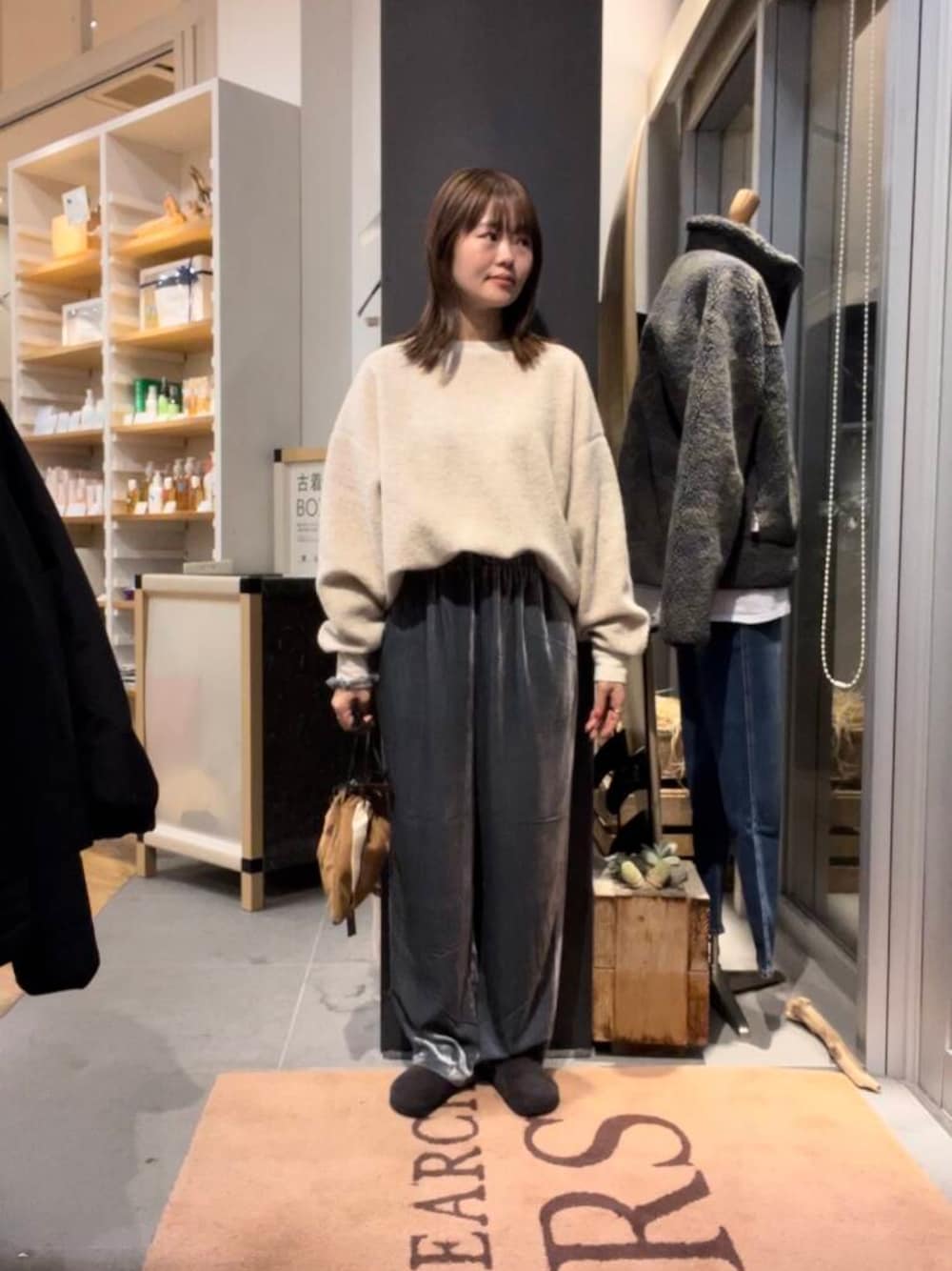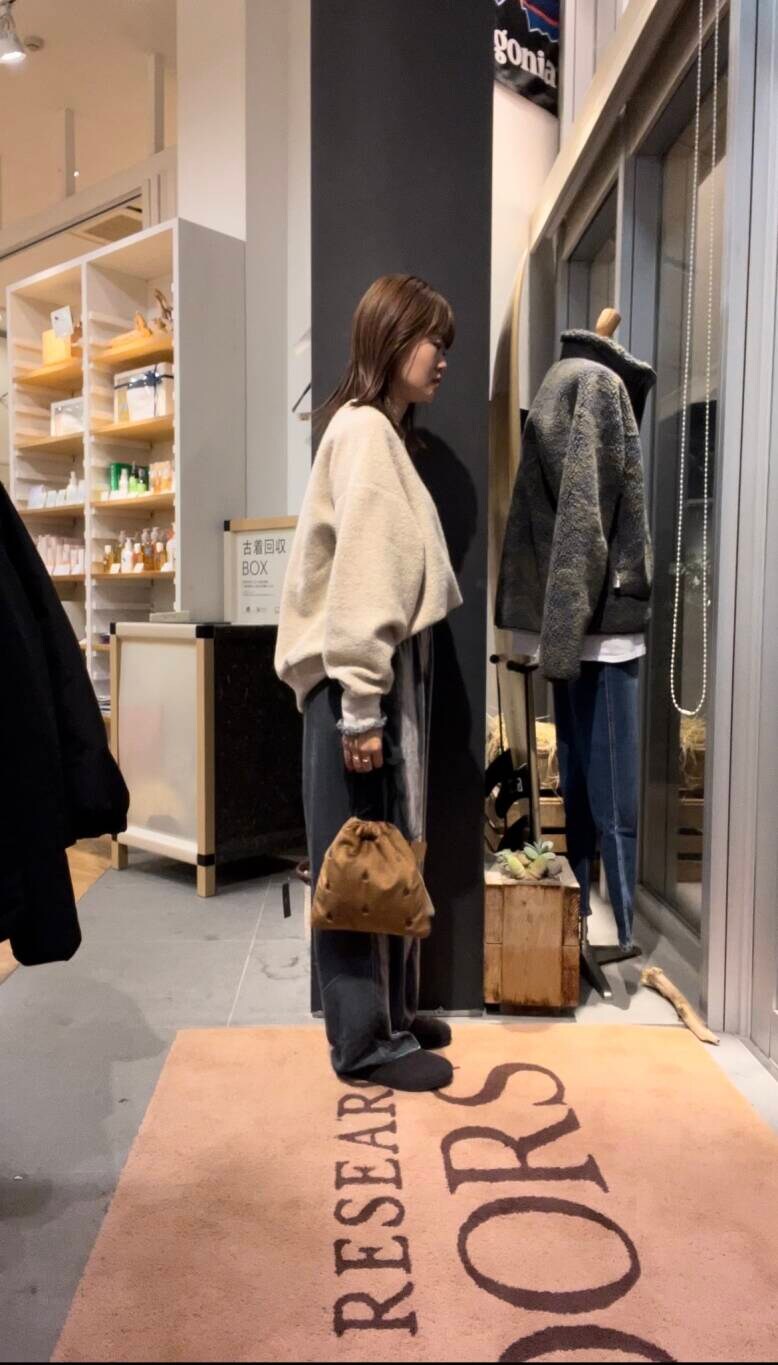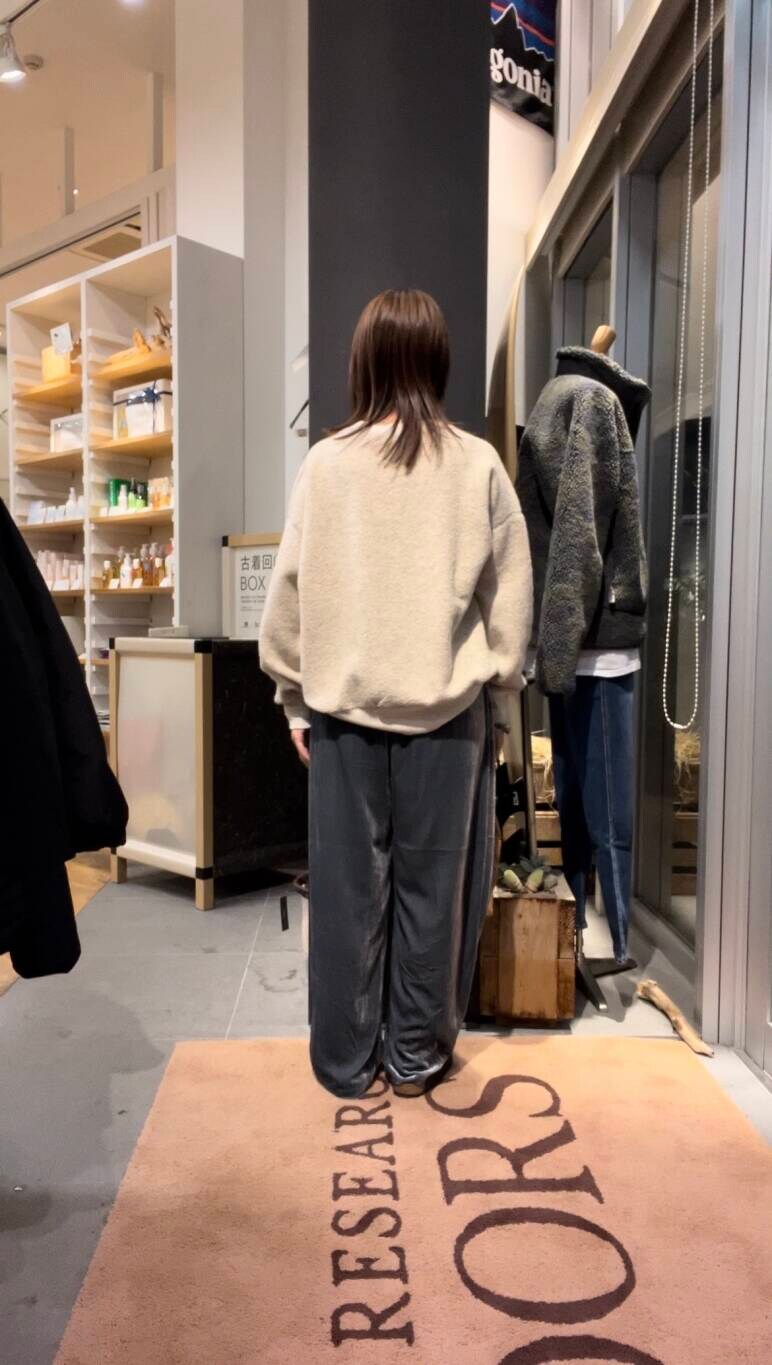 大人気のベロアのパンツとボアが特徴のトップスです。程よい光沢感が上品に見せてくれるパンツですが、トップスもありセットアップで着用できます😊