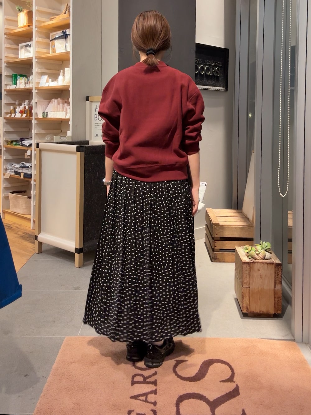 スウェットはハーフジップタイプなので首元もすっきり見せてくれますし、ドットのスカートで甘めな印象でコーディネートしてみました💞