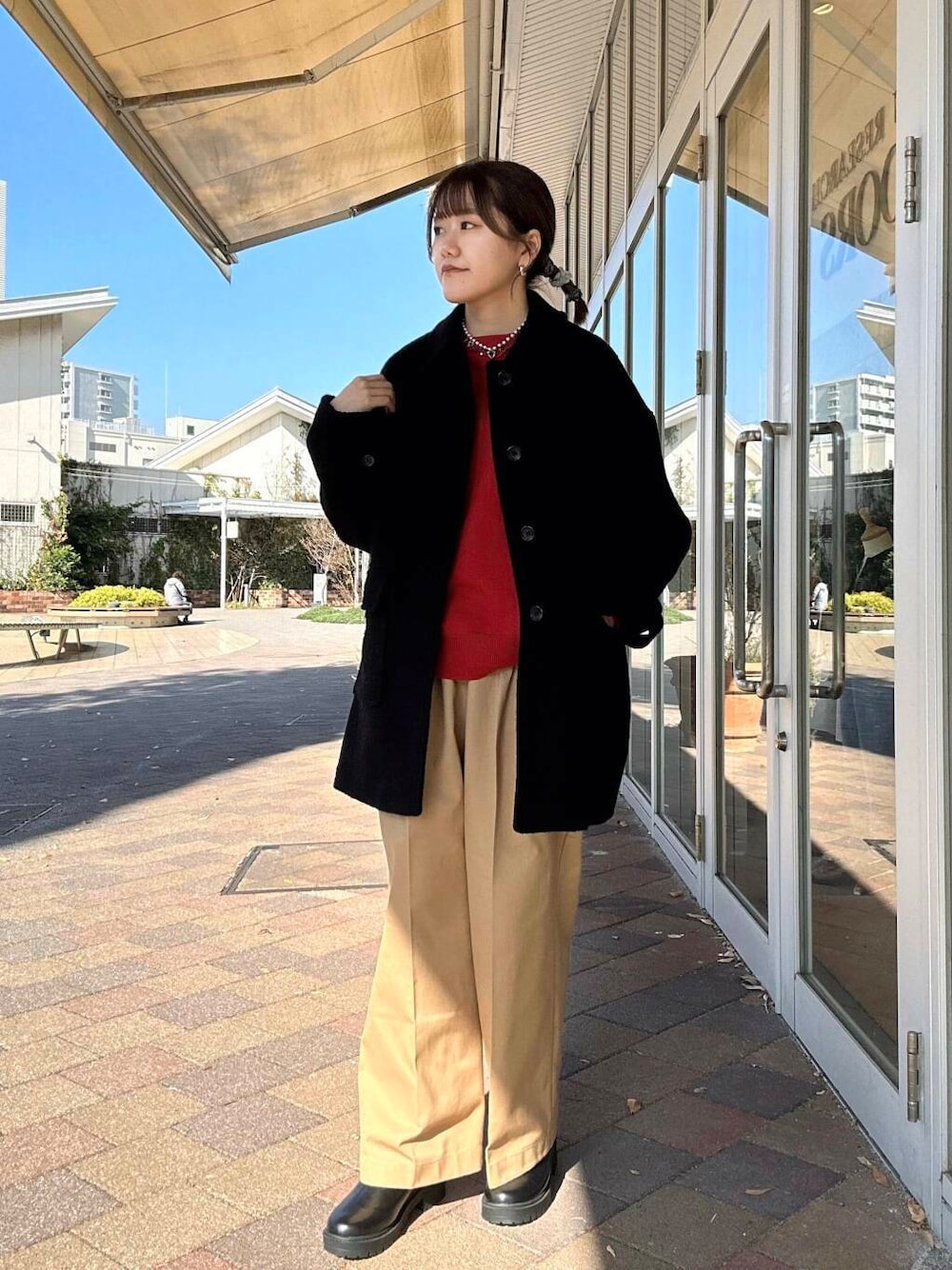 ゆったりしたサイズ感なため肉厚なニットでも羽織りやすいです!