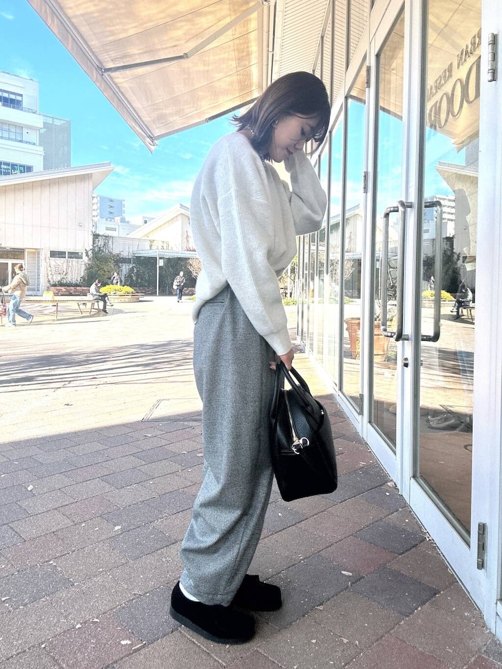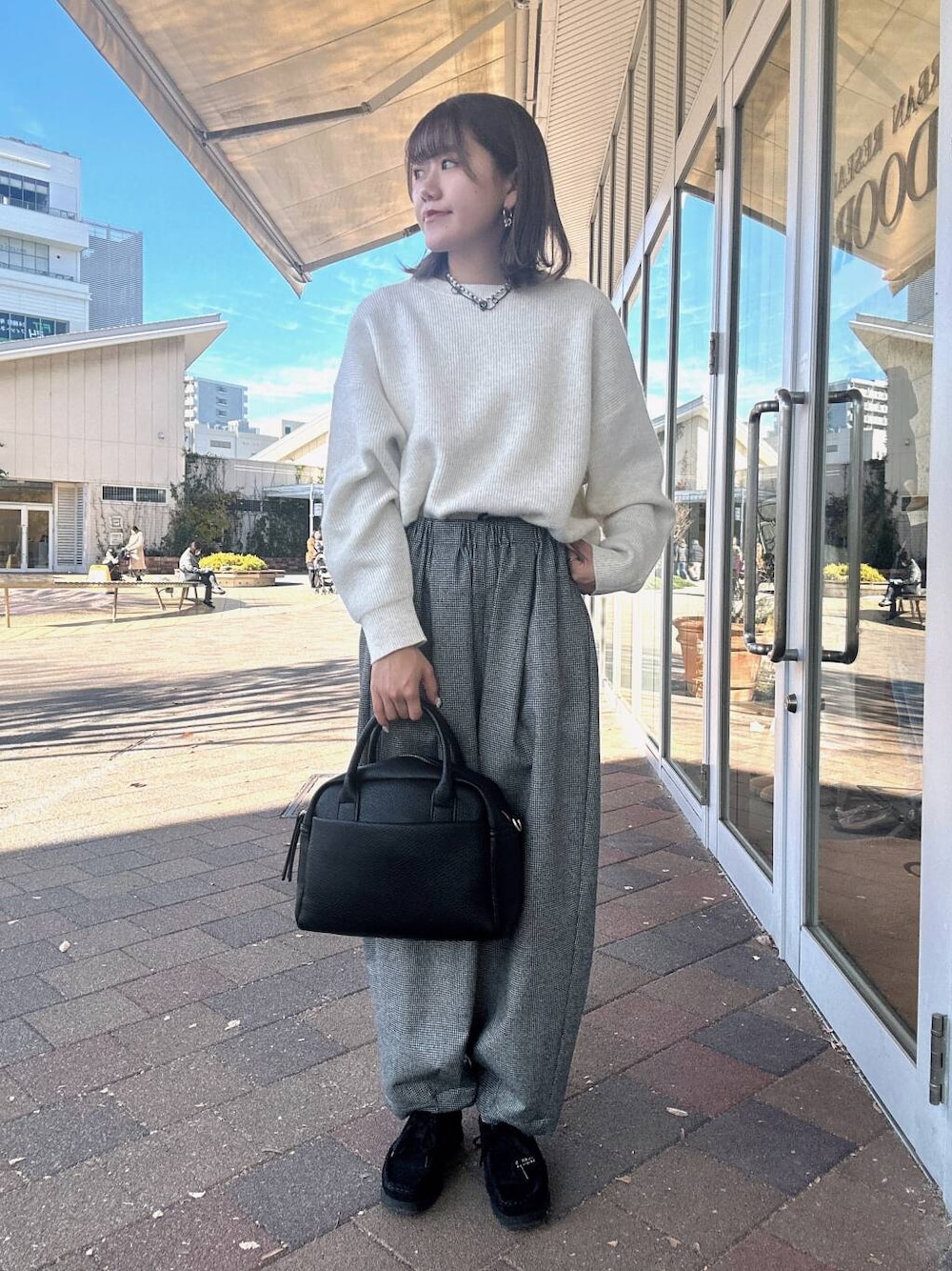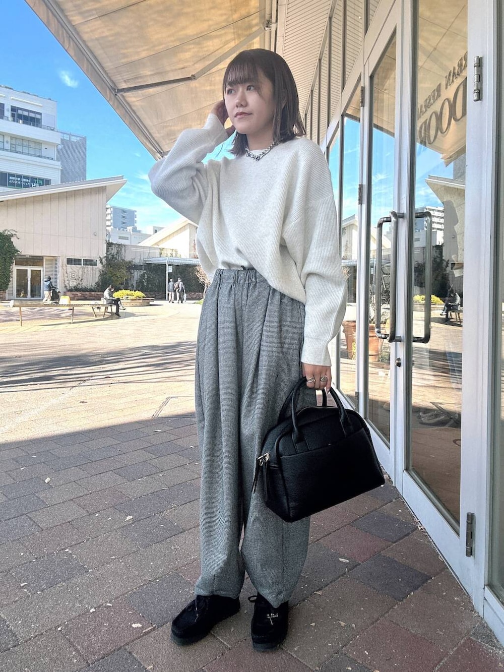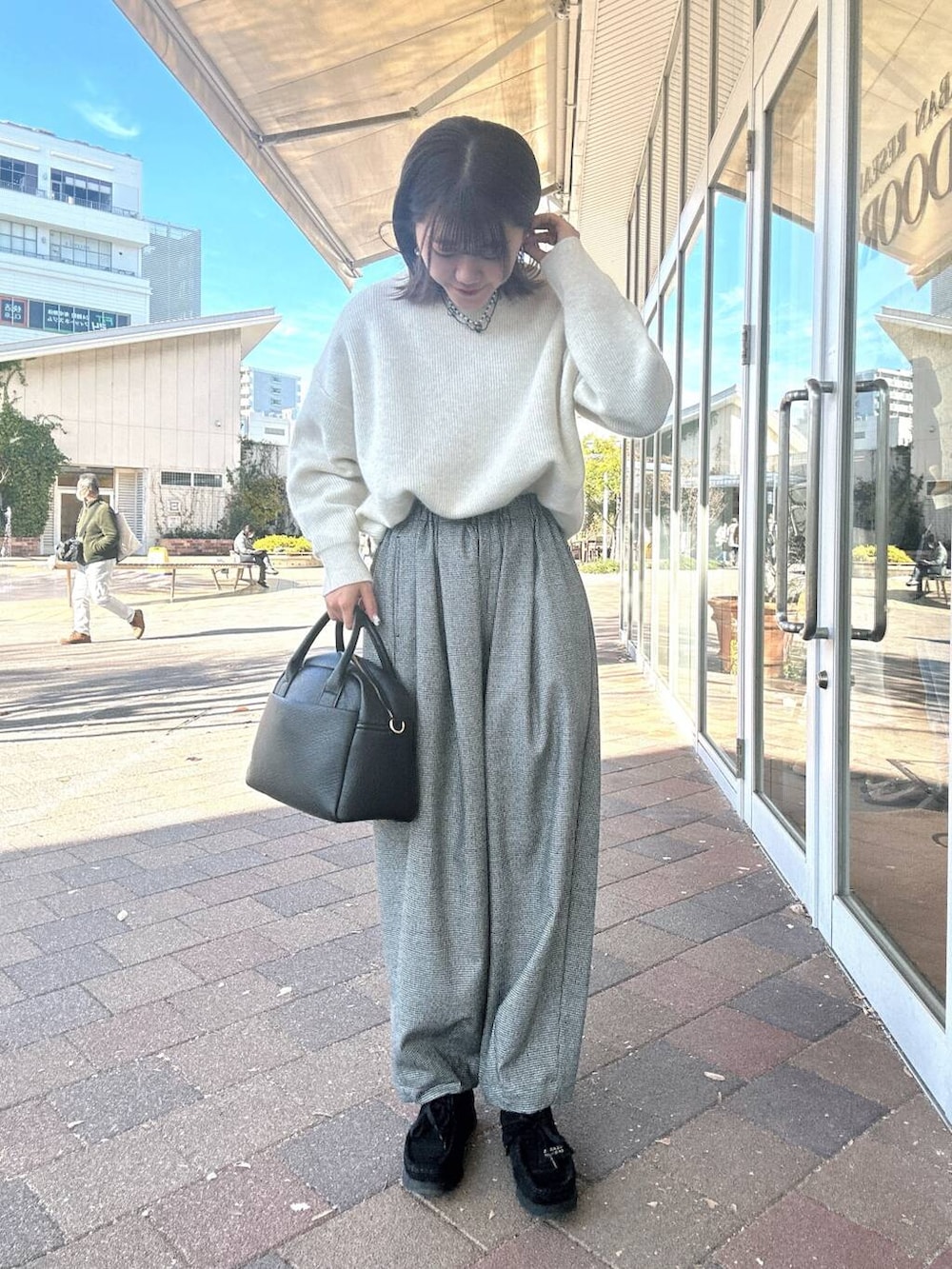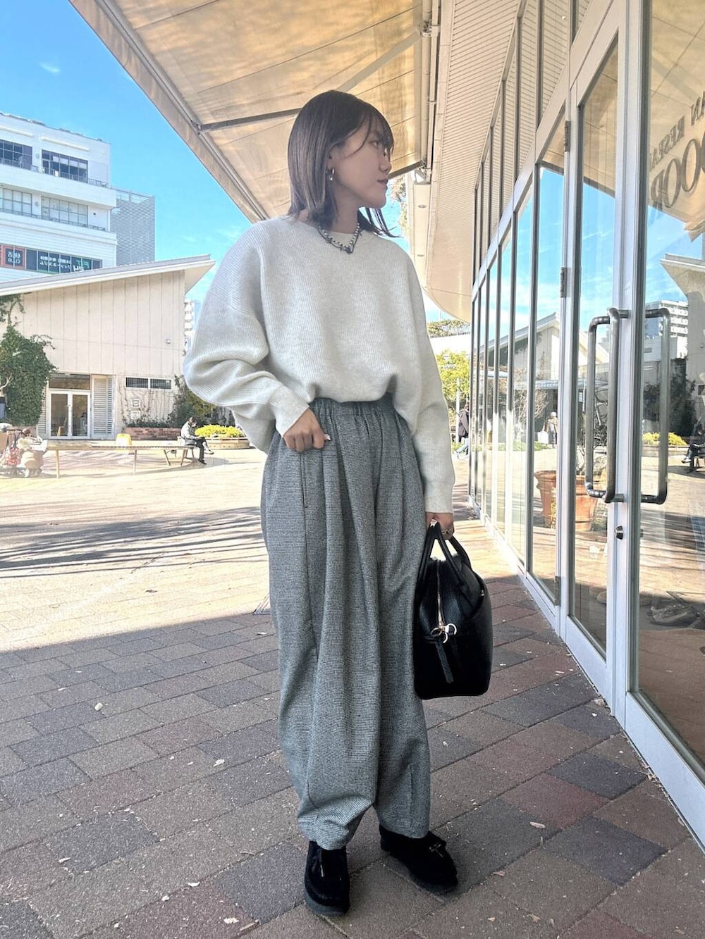 真っ白すぎないベージュよりのカラーなため肌馴染みも良いニットになってます!