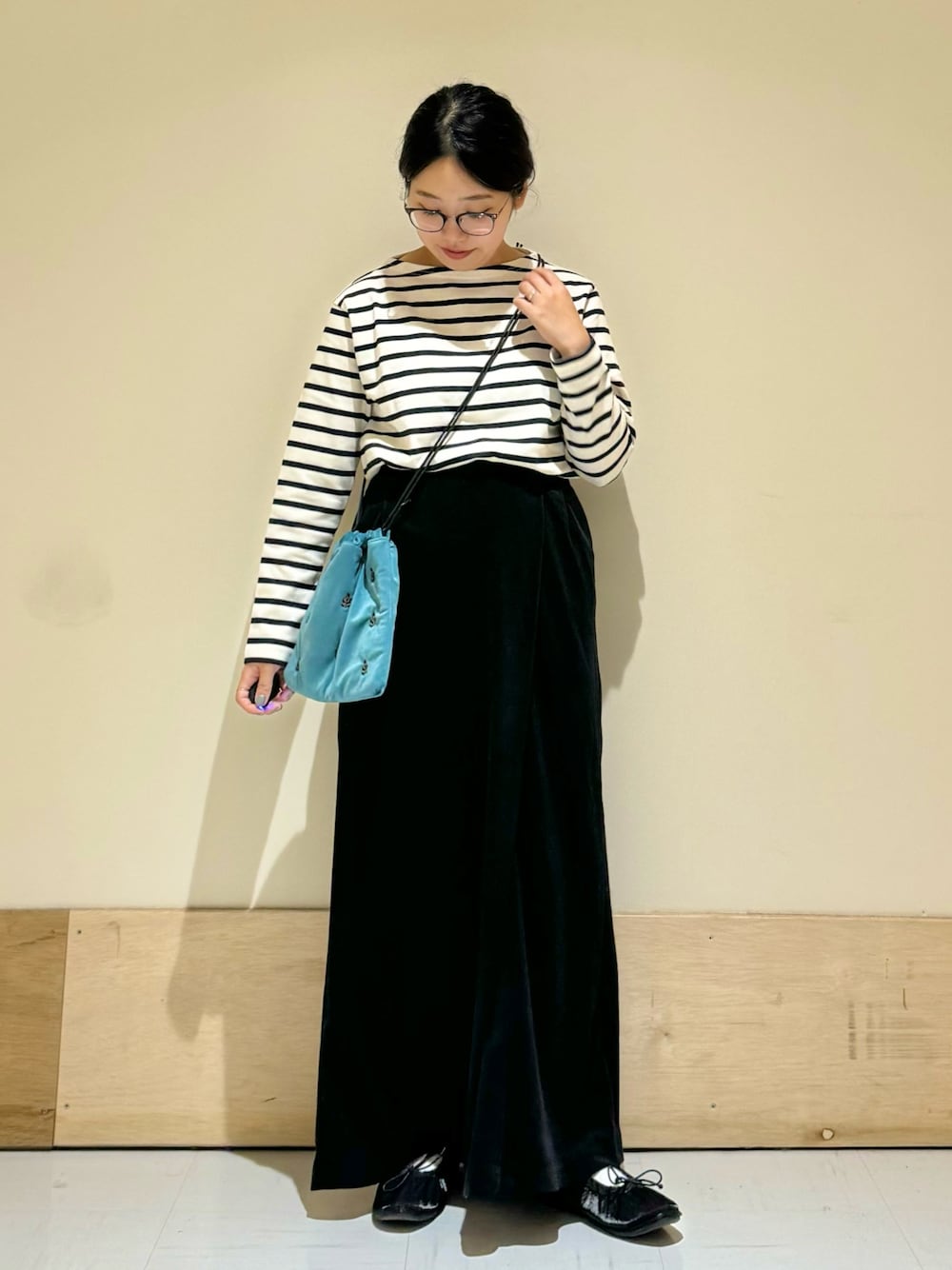 ベロアのスカート、光沢感があって、高級感があって、すごい好きです。