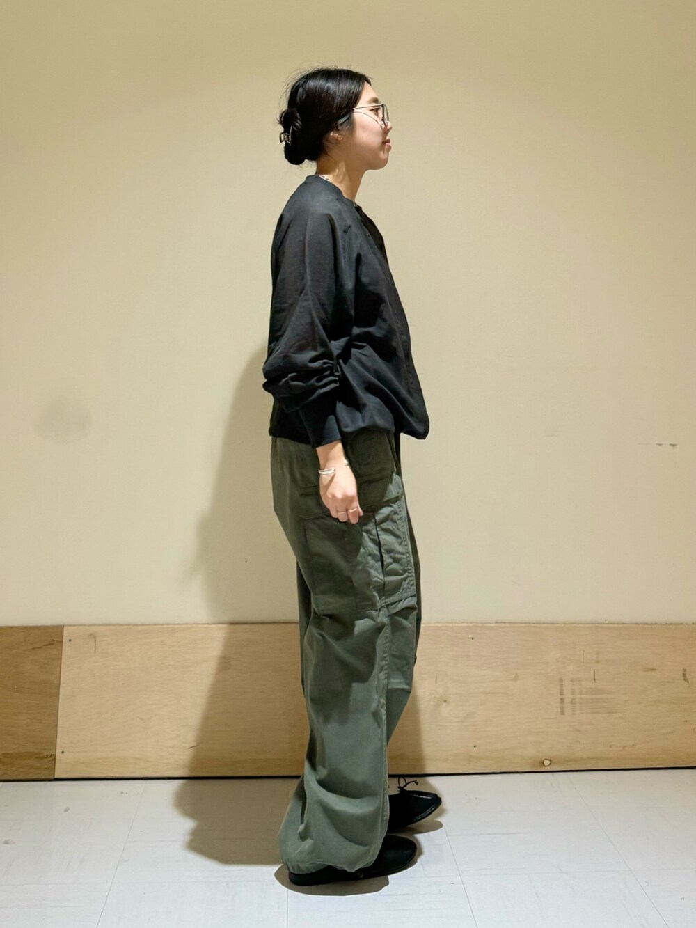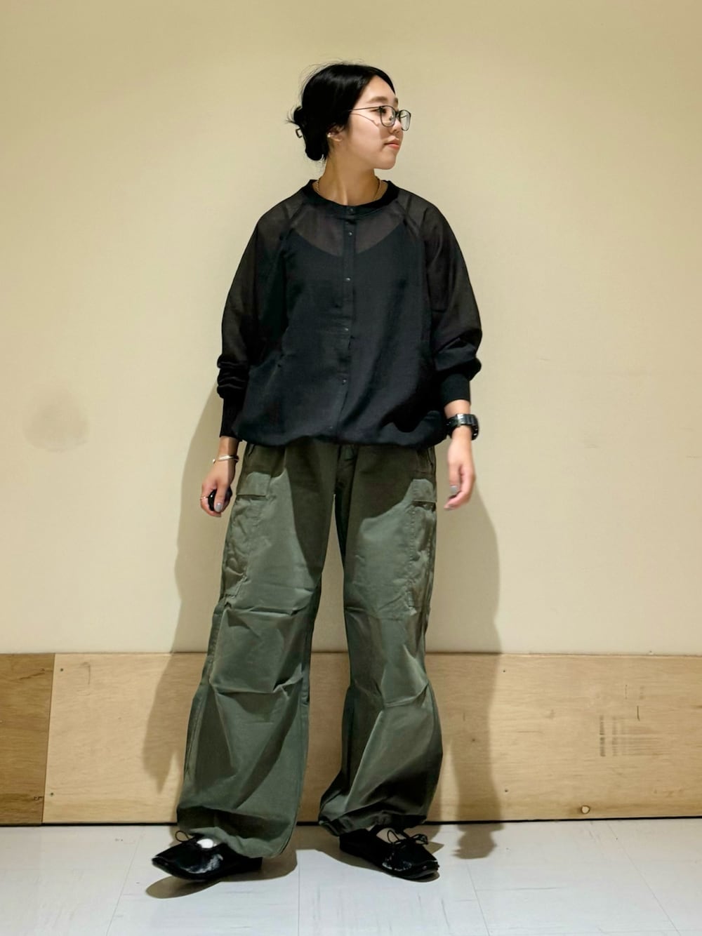 カーゴパンツにはシャツやブラウスで合わせると大人っぽい雰囲気で着れます◎