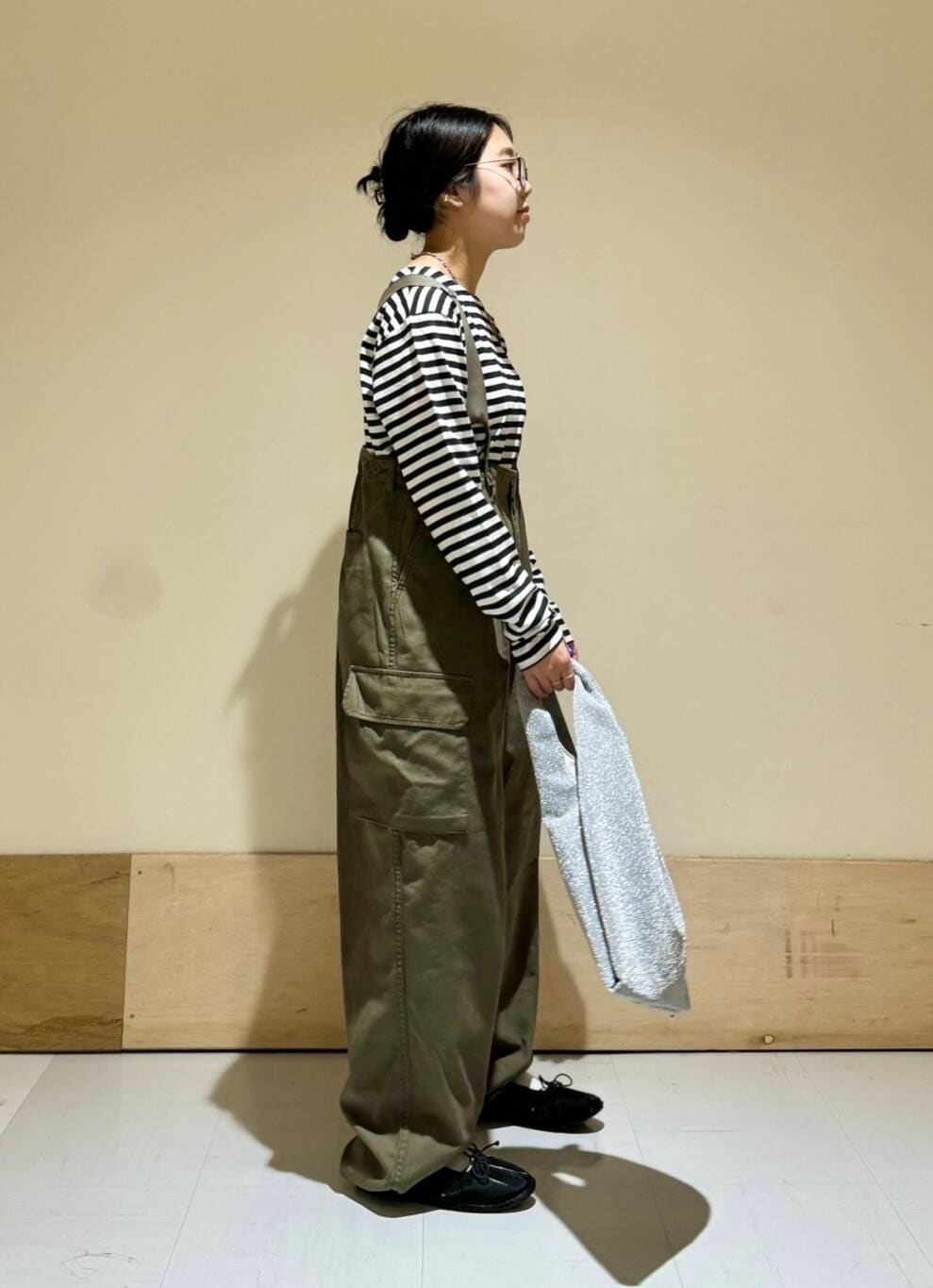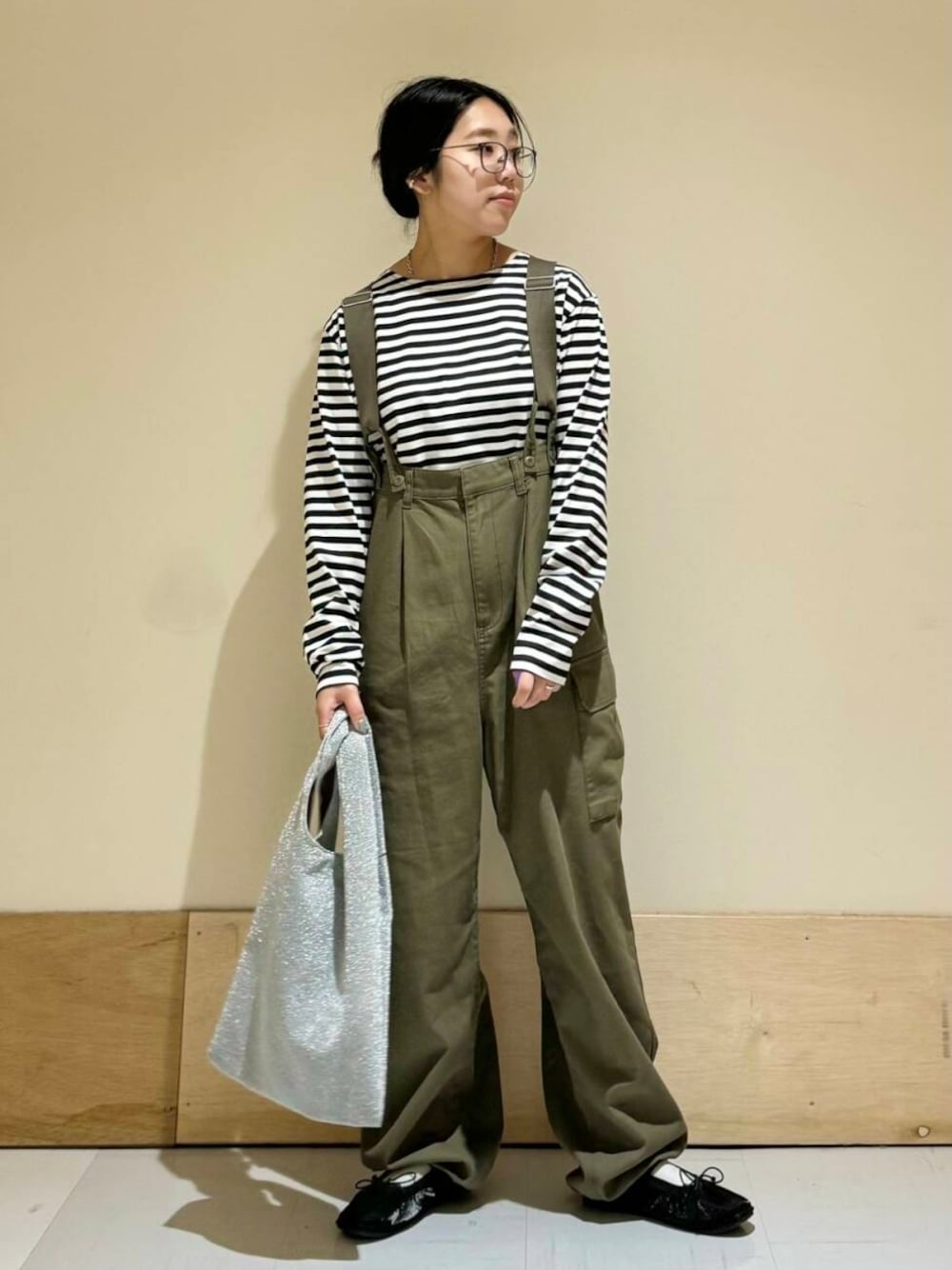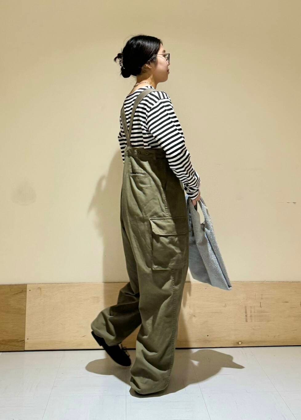 カーゴパンツはちょっとメンズすぎるという方にも、サロペットのような雰囲気で
