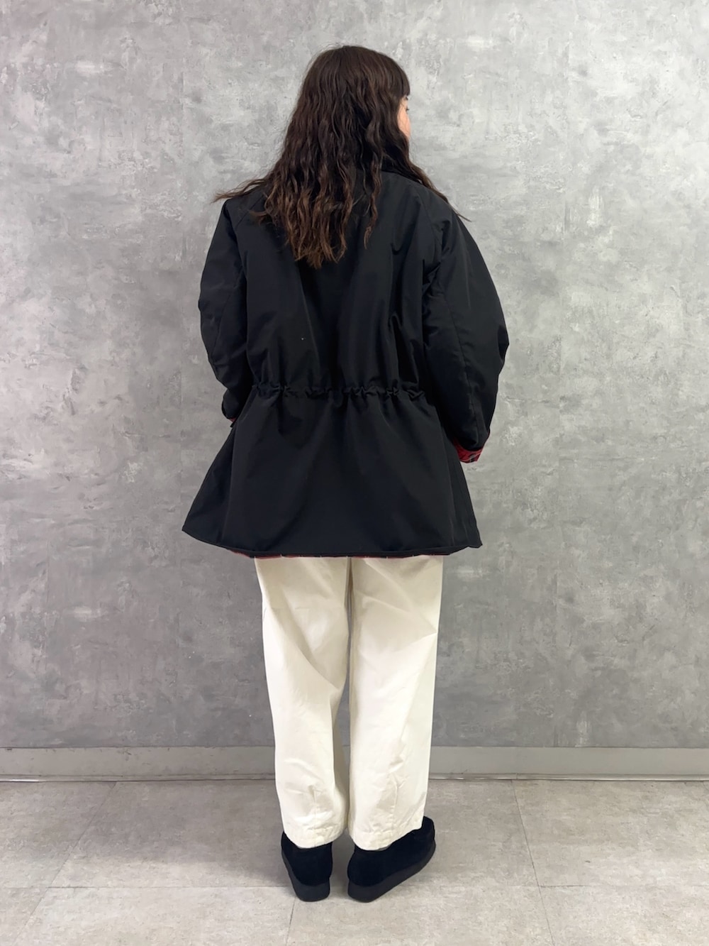 オーバーサイズモデルですので中にしっかり着込めますし、ウエストを絞ればレディライクなスタイルでお召しいただけますよ♩