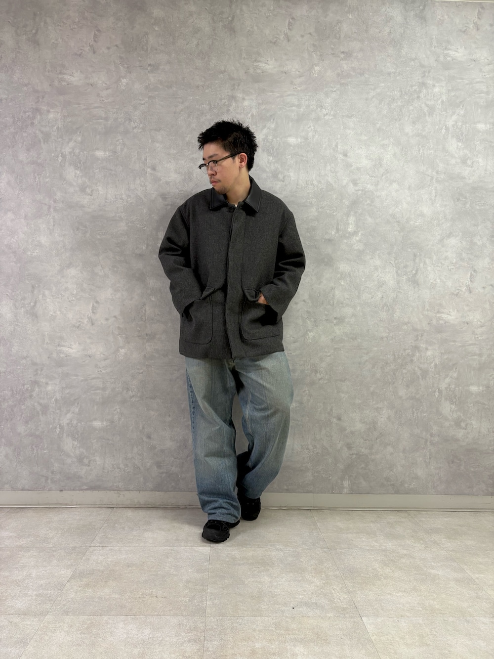 身幅広めなので中に色つきのニットや厚手のもの着て頂いてもかさばらずレイヤードできちゃいます。