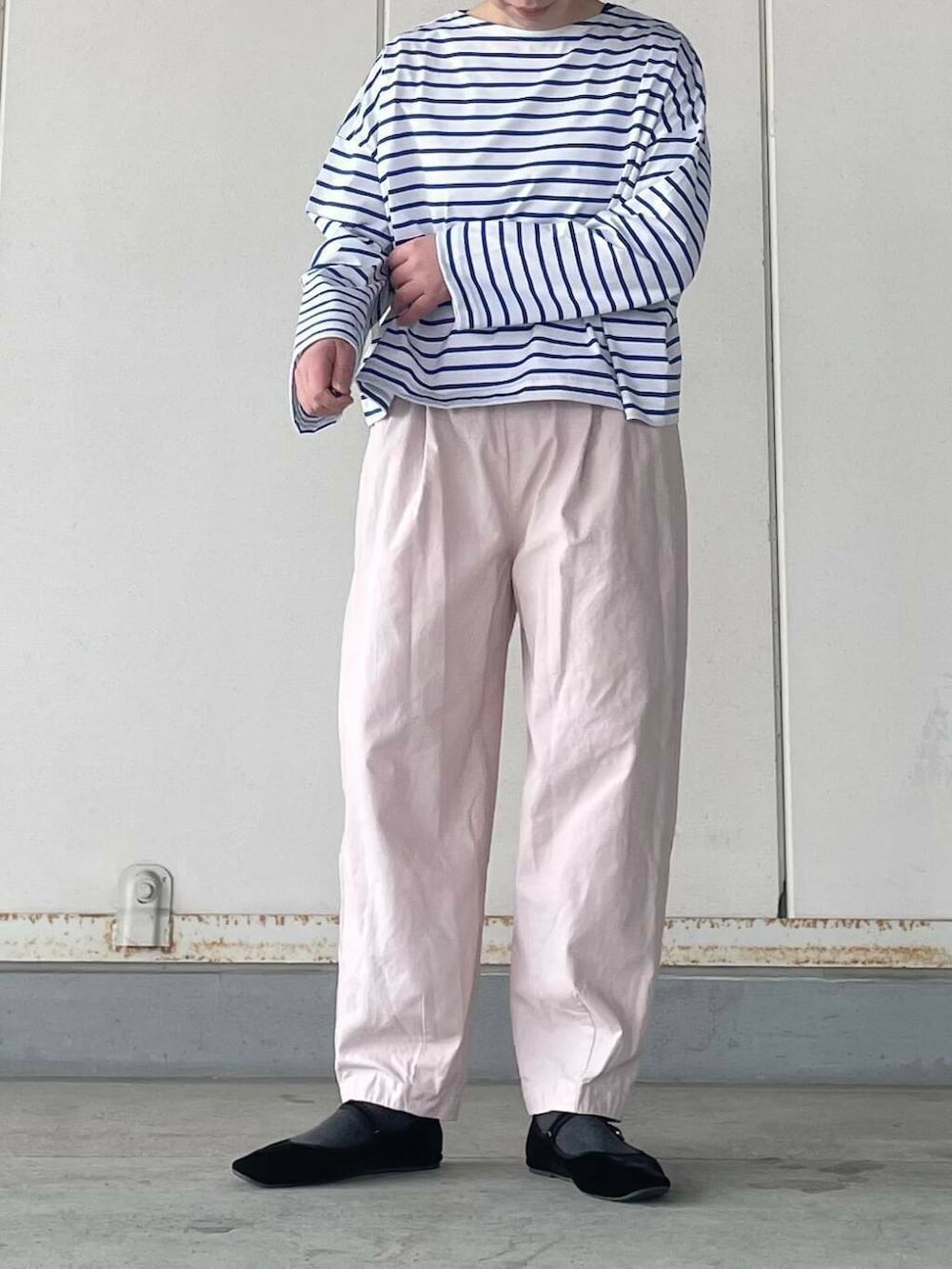 今回は1枚でかわいいデザインのボーダーとあわせたシンプルスタイルです。