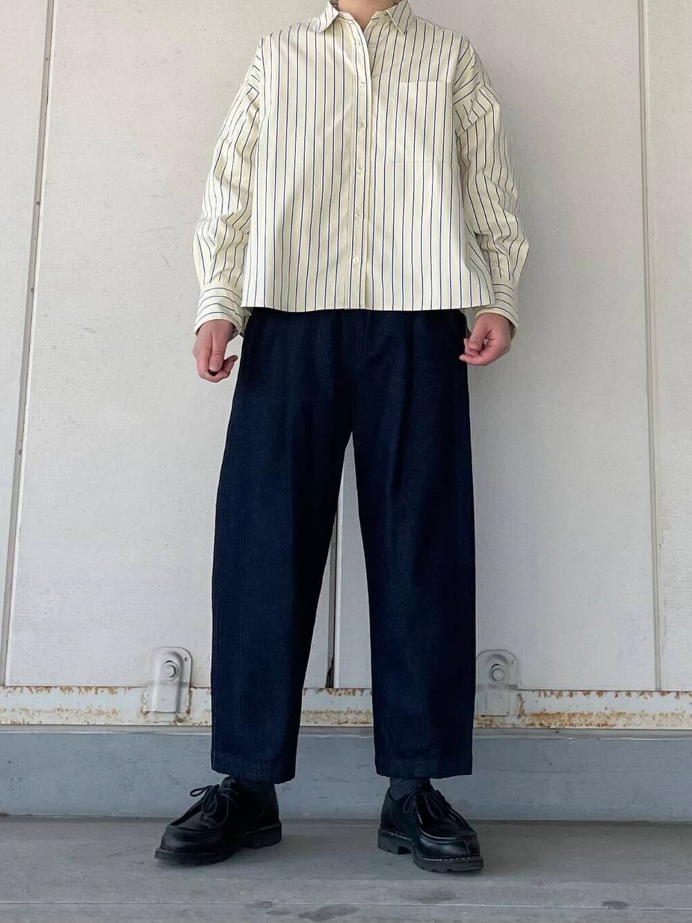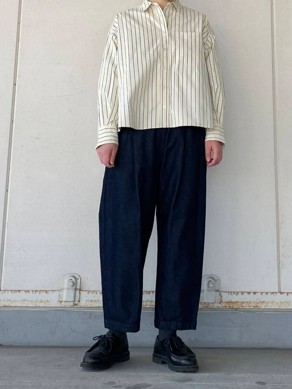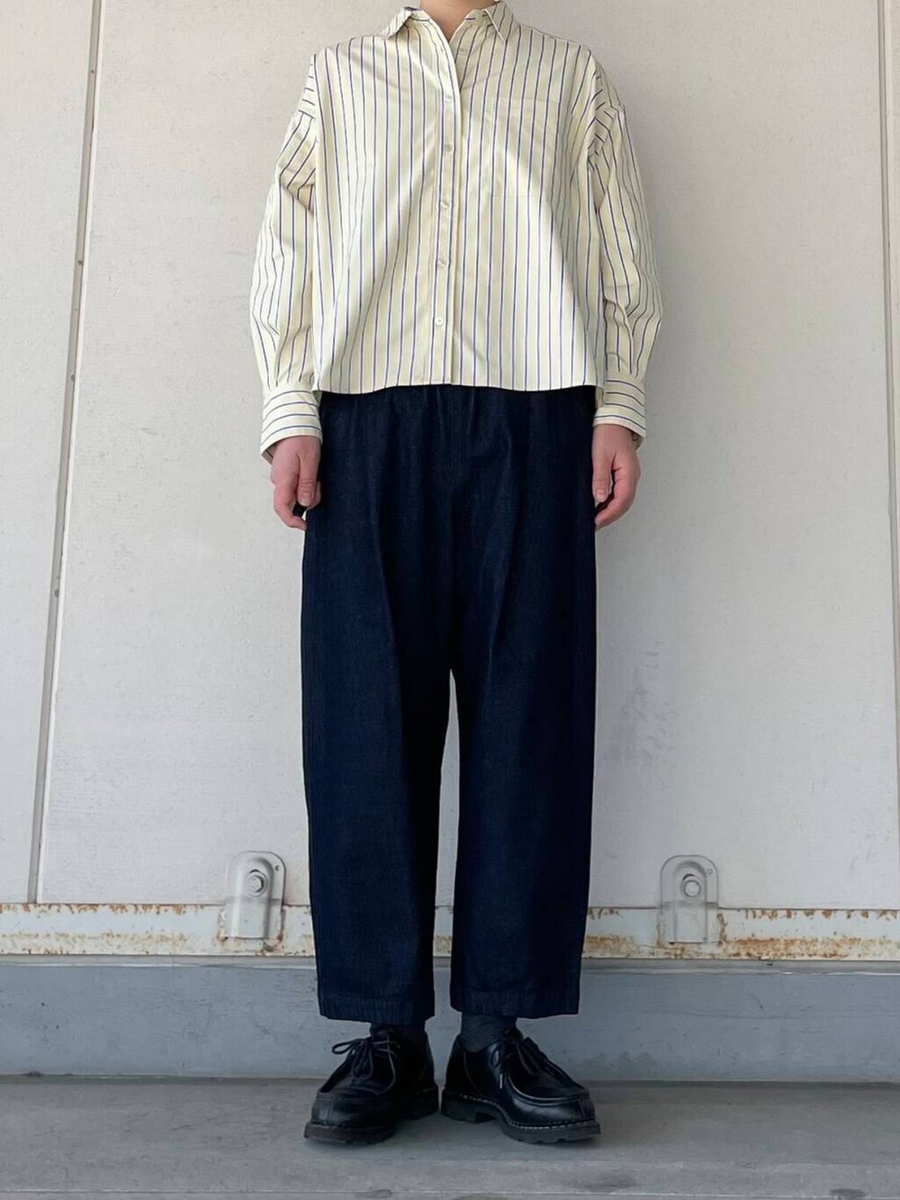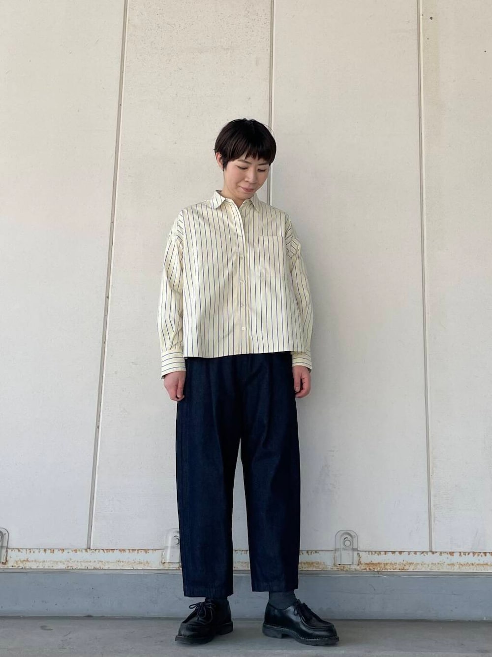 身幅はゆったり着丈はコンパクトですので、ワイドパンツやスカートなどと相性ばっちりです。