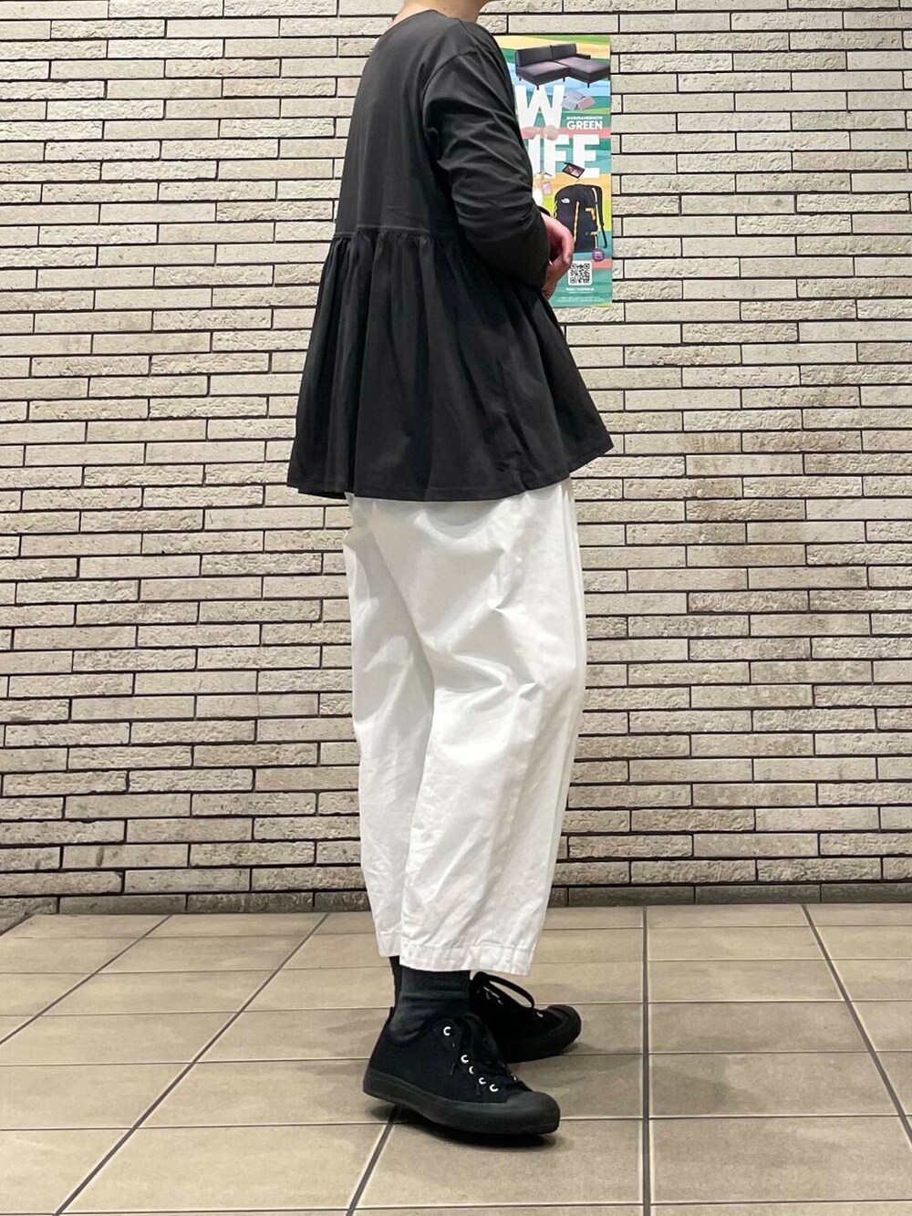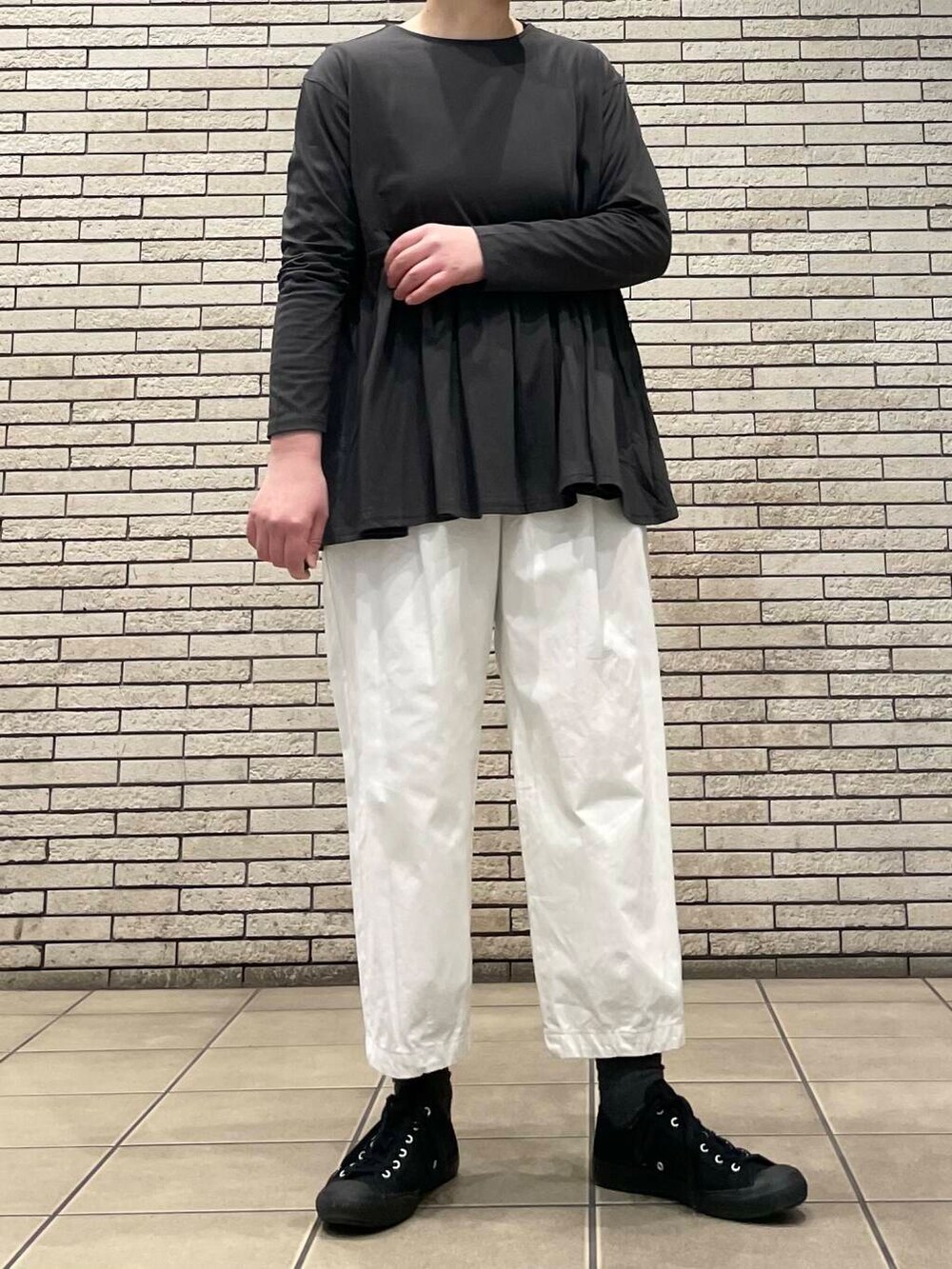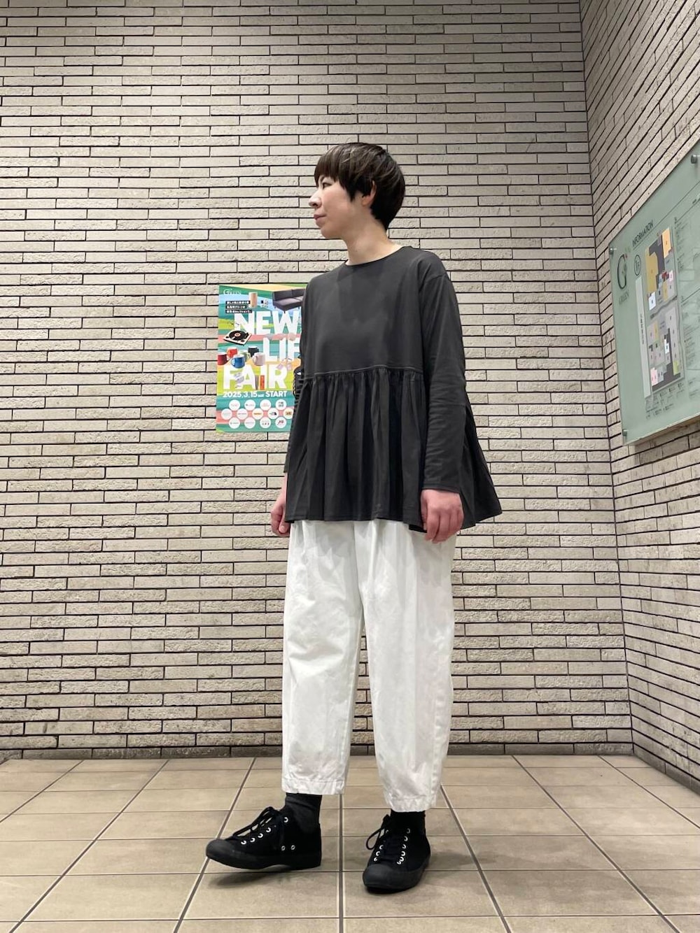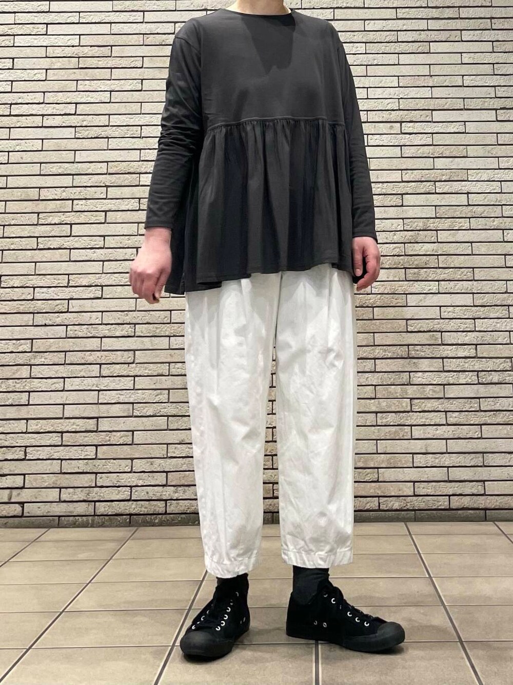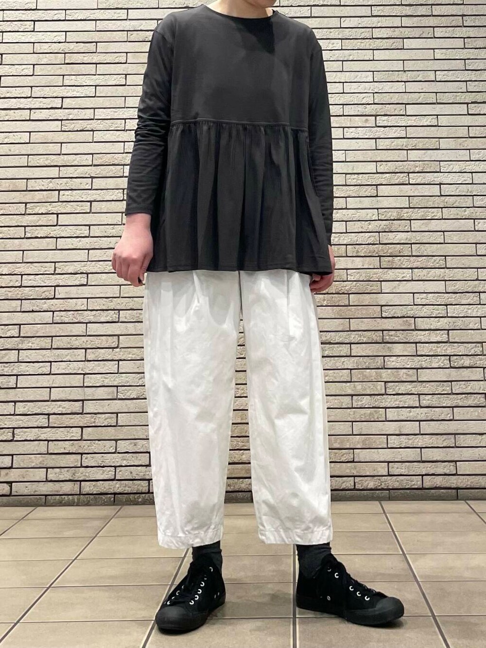 ウエストのギャザーが存在感がありますが、チャコールは甘すぎない雰囲気です。