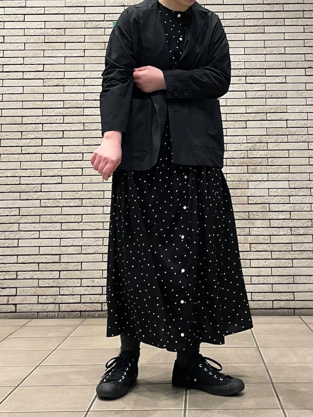今回はブラックのジャケットで、ワントーンでスッキリとした印象に。