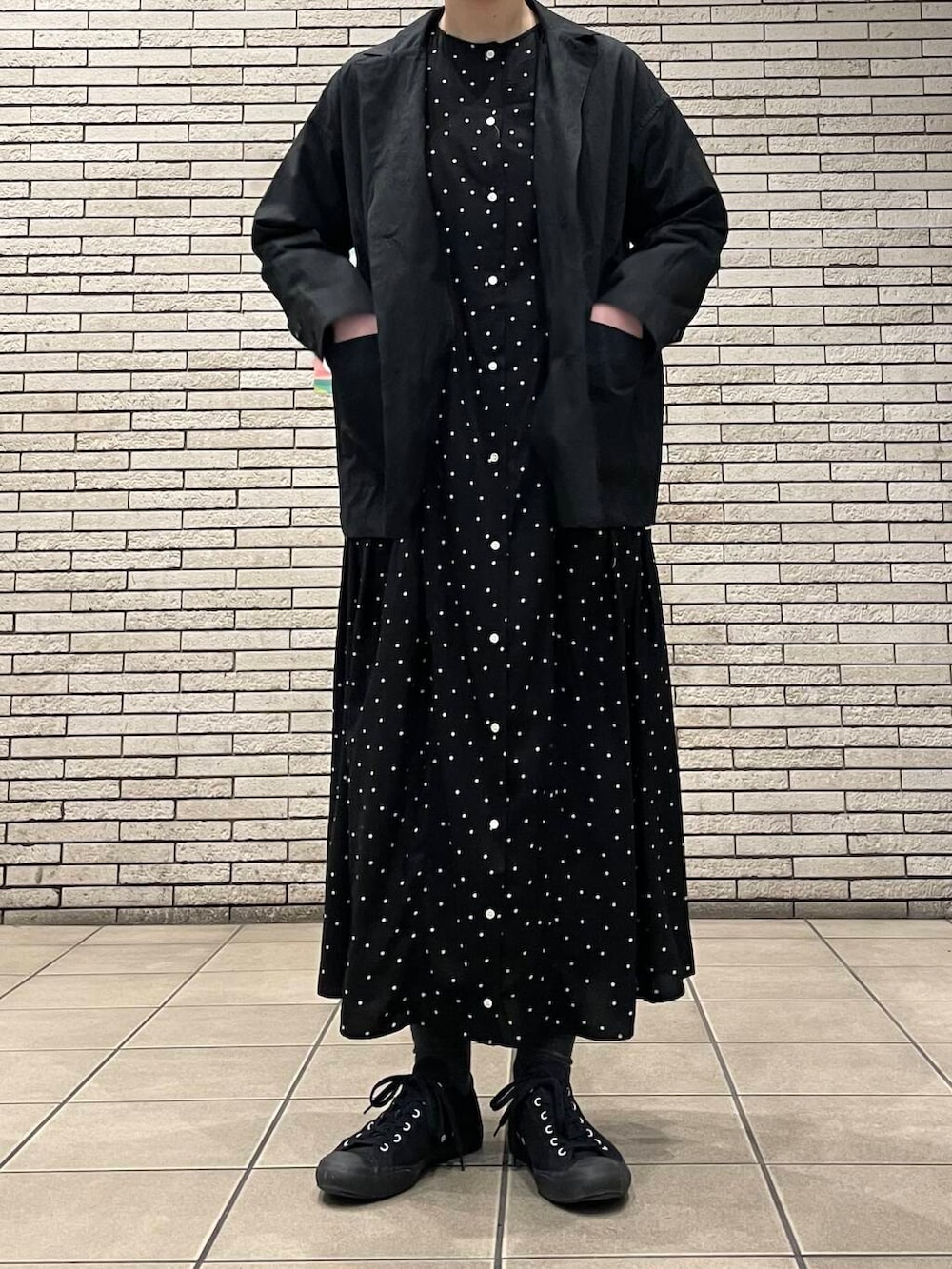 ワンピースは広がりすぎず、とろみのある落ち感で着やすいです。